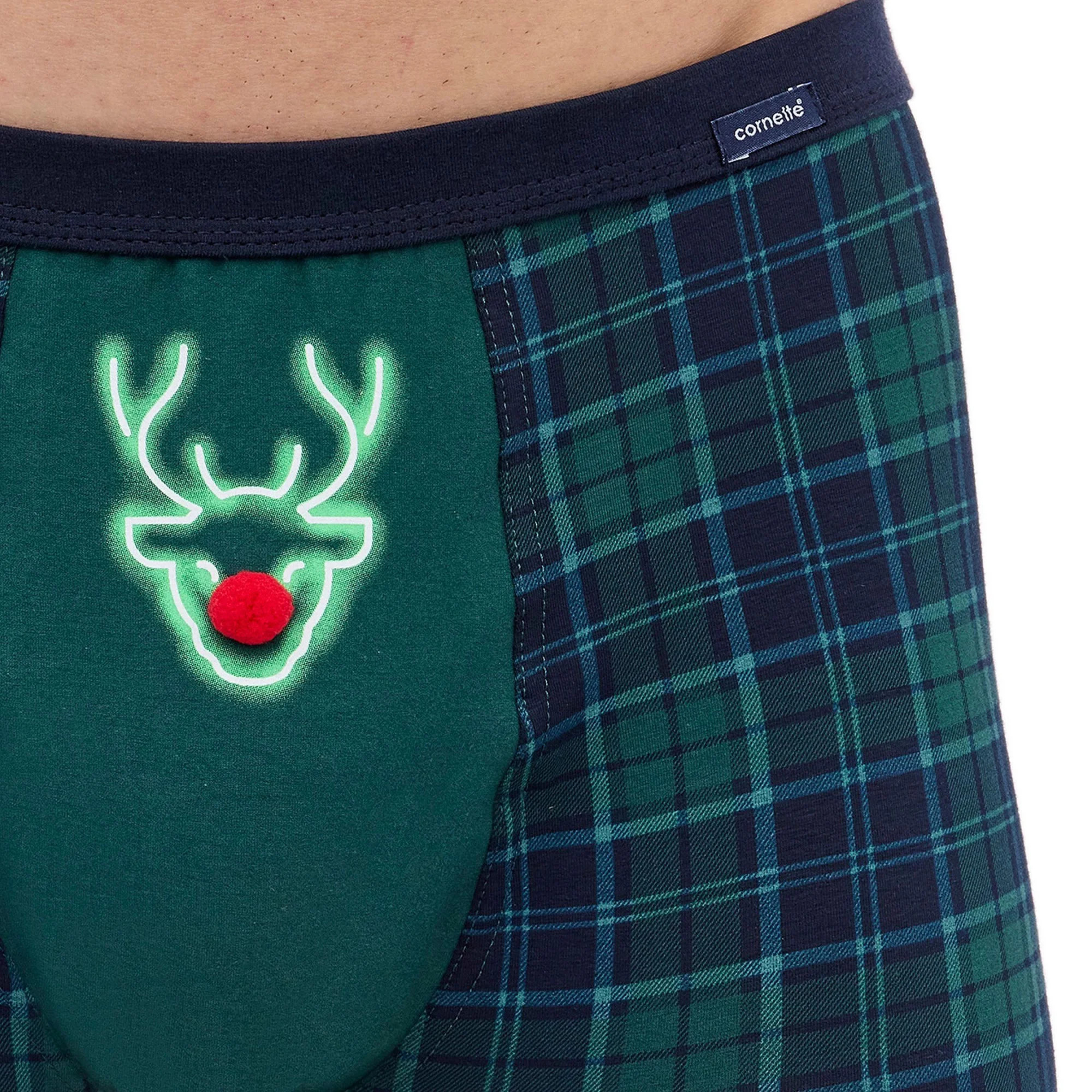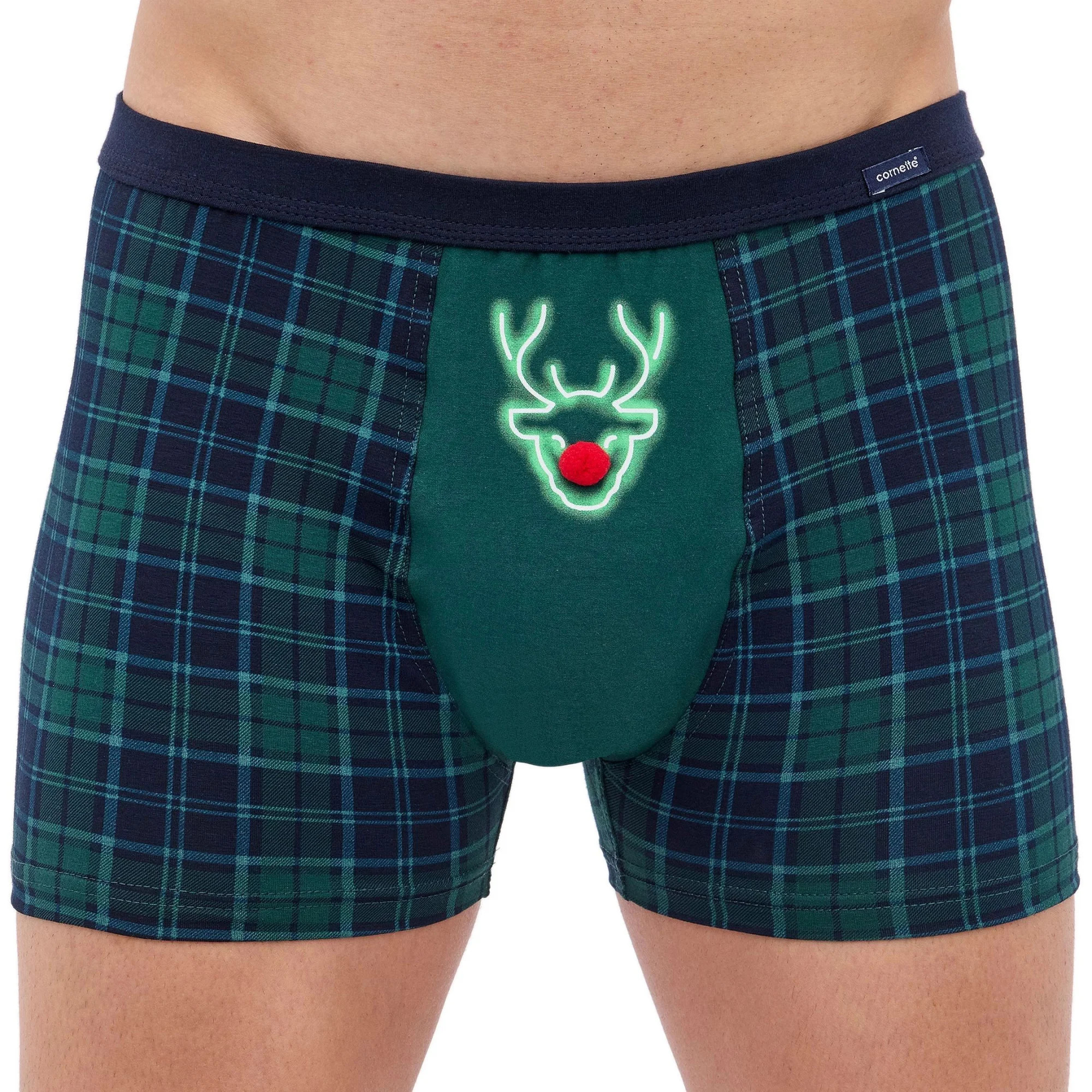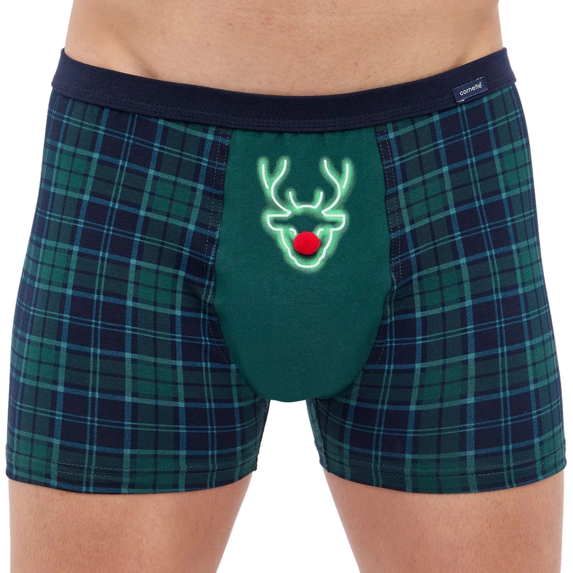 Pánské boxerky 007/75 Red nose CORNETTE - zelená barva - z vysoce jakostní bavlny - ozdobené barevným potiskem - boxerky mají gumu sešitou plochým švem - guma je obšitá bavlnou - lem nohaviček netlačí do stehen, proto jsou boxerky při nošení pohodlné a komfortní - vánoční kolekce
