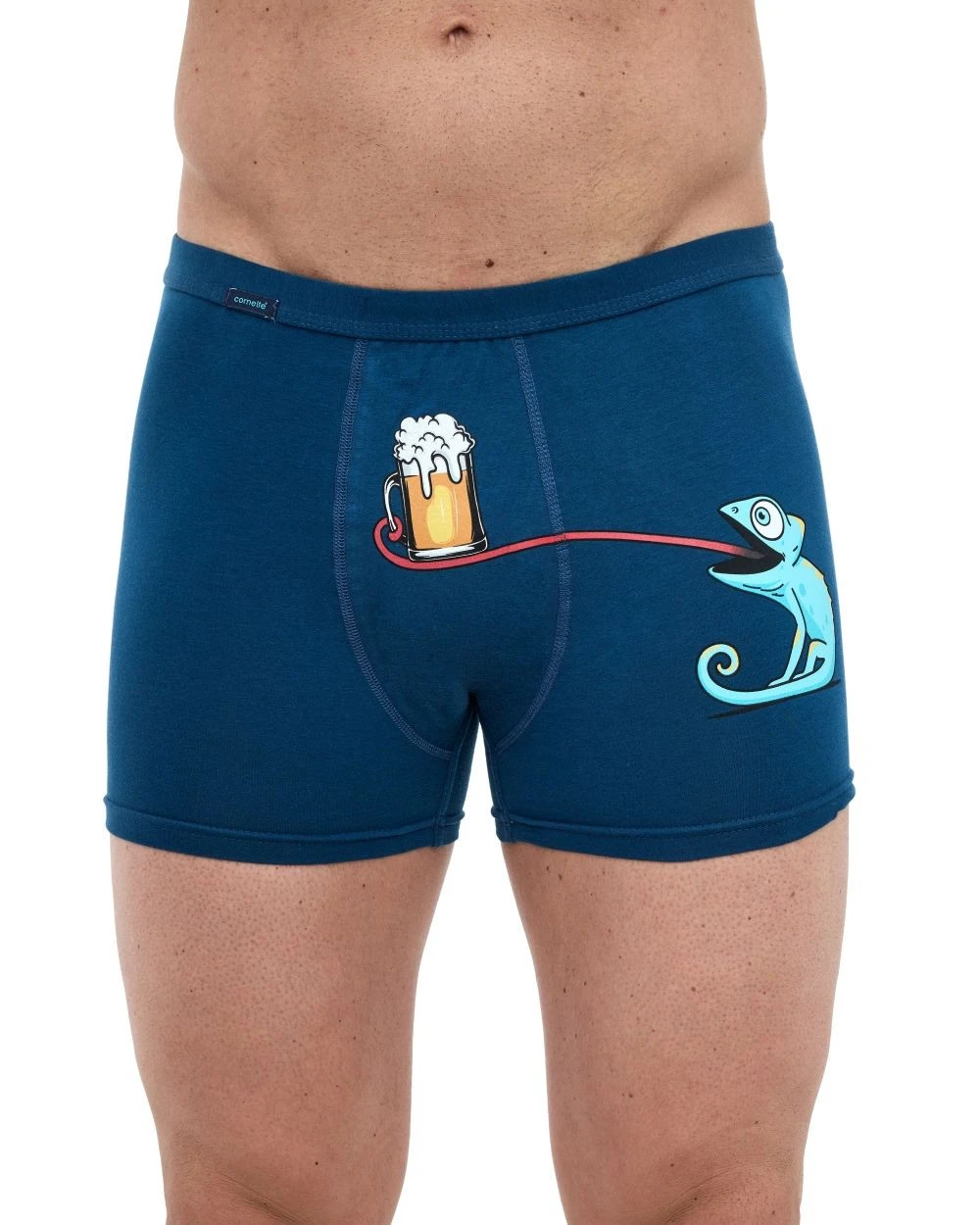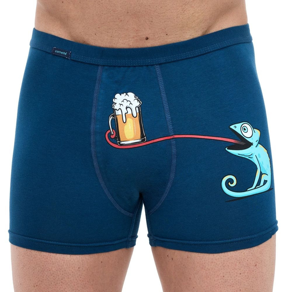 Pánské boxerky 280/248 Tattoo Leon CORNETTE - tmavě modrá barva - z vysoce jakostní bavlny - ozdobené barevným zábavným potiskem - guma s plochým švem - obšitá bavlnou - lem nohaviček netlačí do stehen, proto jsou boxerky při nošení pohodlné a komfortní
