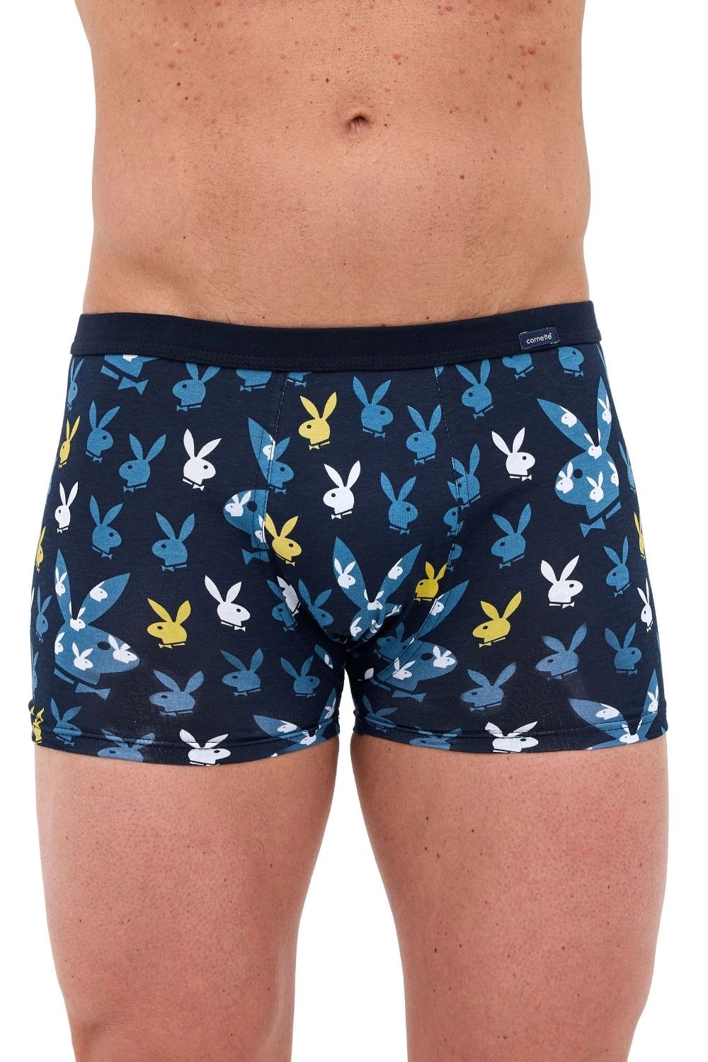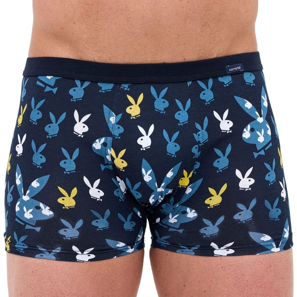 Pánské boxerky 280/251 Tattoo Rabbit CORNETTE - tmavě modrá barva - z vysoce jakostní bavlny - ozdobené barevným zábavným potiskem - guma s plochým švem - obšitá bavlnou - lem nohaviček netlačí do stehen, proto jsou boxerky při nošení pohodlné a komfortní