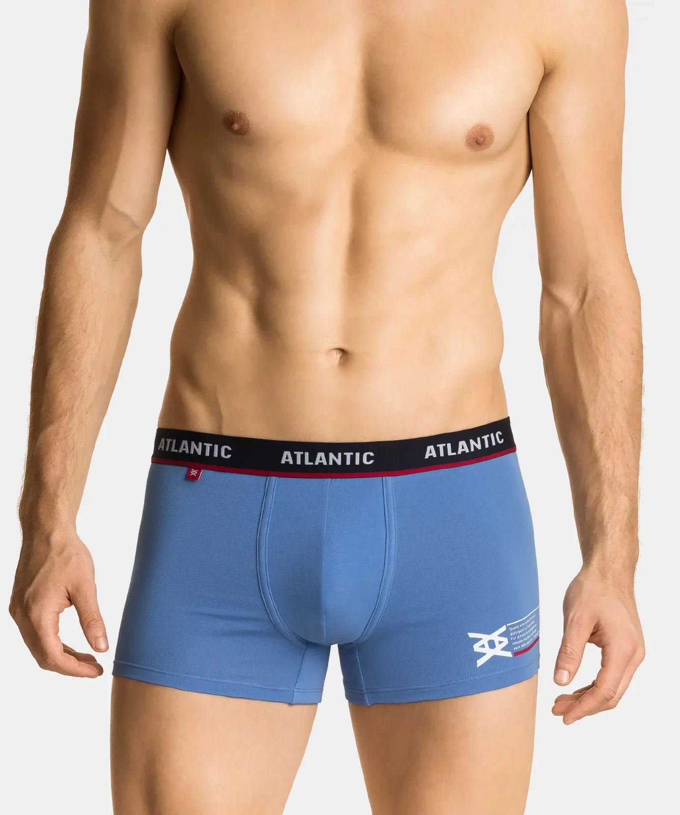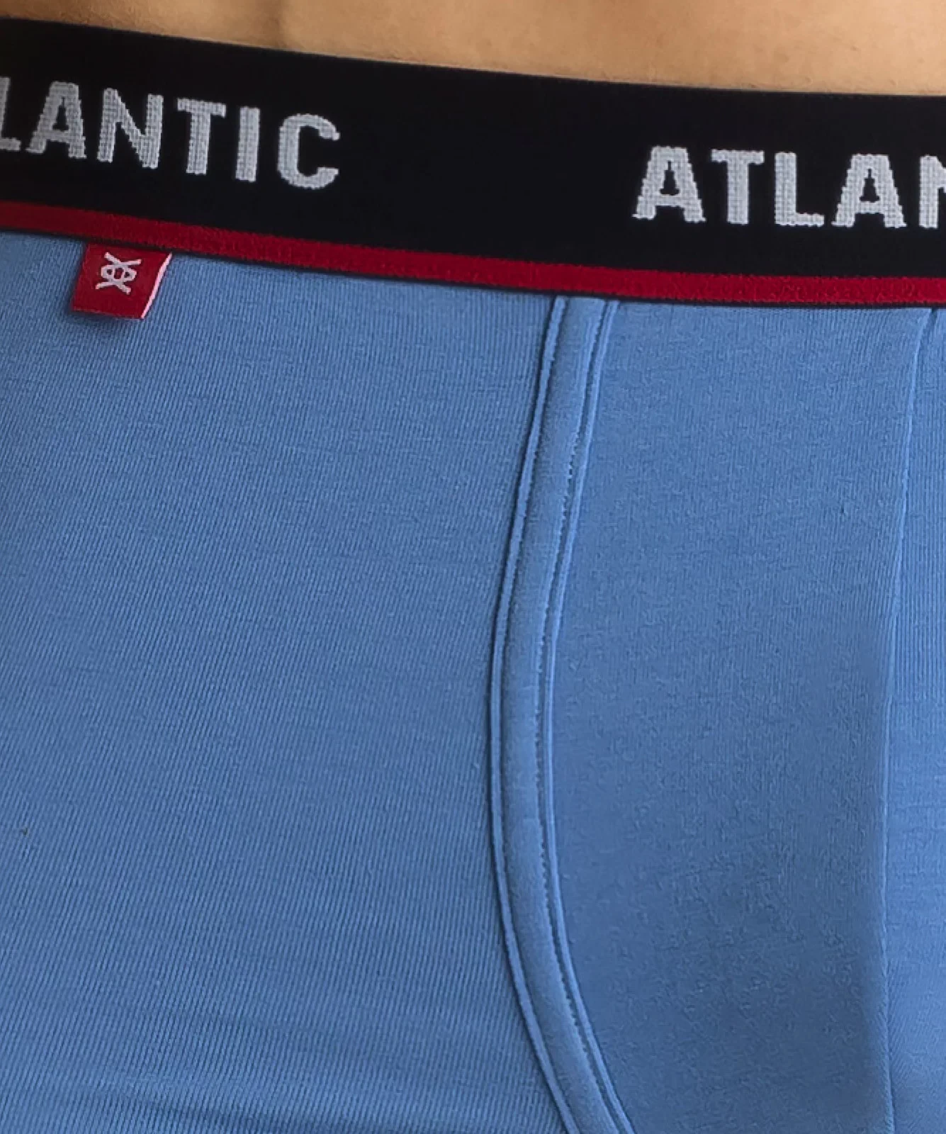 V trojbalení najdete přiléhavé pánské boxerky ve světle modré, tmavě modré a tmavě modré barvě. Sportovní boxerky mají nízký pas a univerzální délku nohavic. Pas je zakončen měkkou a nestlačující gumou s velkými nápisy ATLANTIC. Boxerky mají také profilující střihy, díky kterým prádlo perfektně sedí na postavě a přilne k ní.