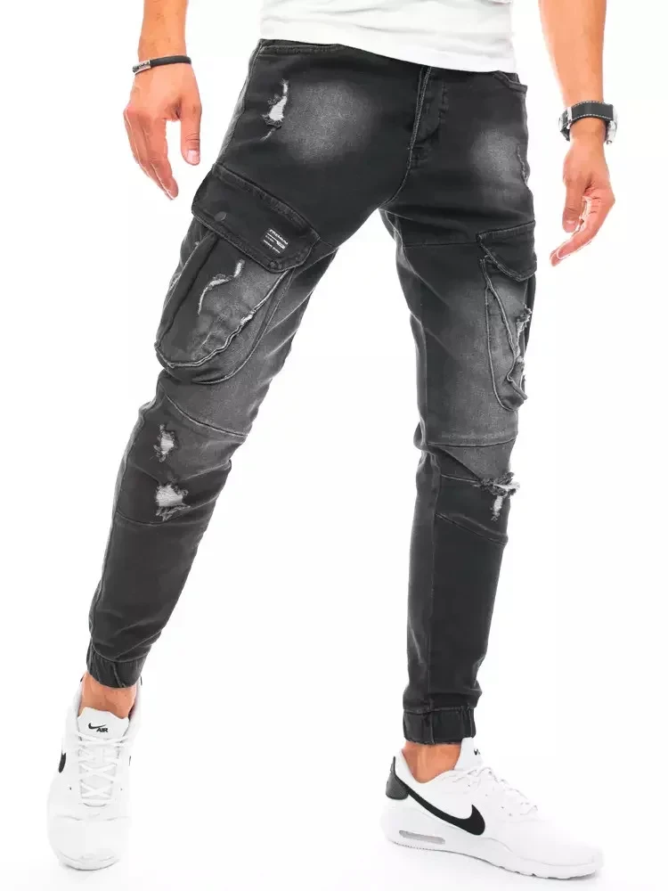Dámské džínové kalhoty v tmavě modré barvě, rovné nohavice, zapínání na knoflík a zip.