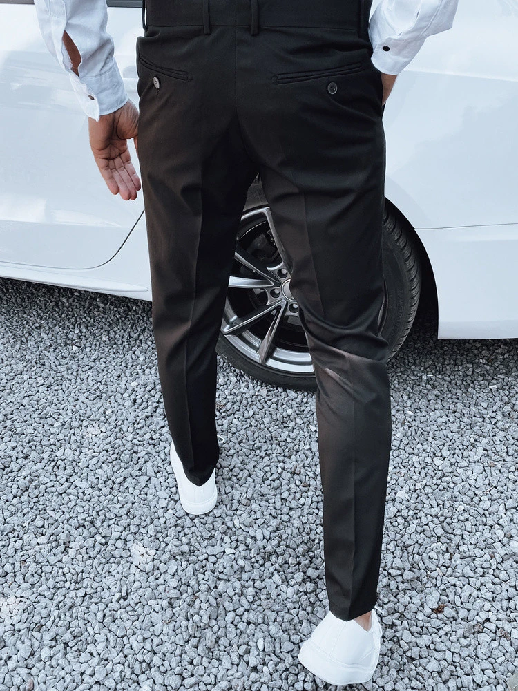 Stylové pánské kalhoty, které se skvěle hodí pro různé situace. Pečlivě zpracované, zaručují odolnost a pohodlí. Moderní design s elegantními detaily. Ideální na pracovní schůzky, oslavy nebo každodenní vycházky. Doplňte svůj šatník o tento univerzální kousek.