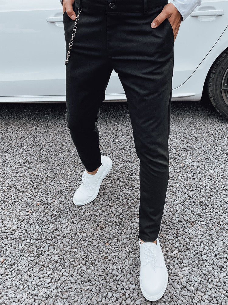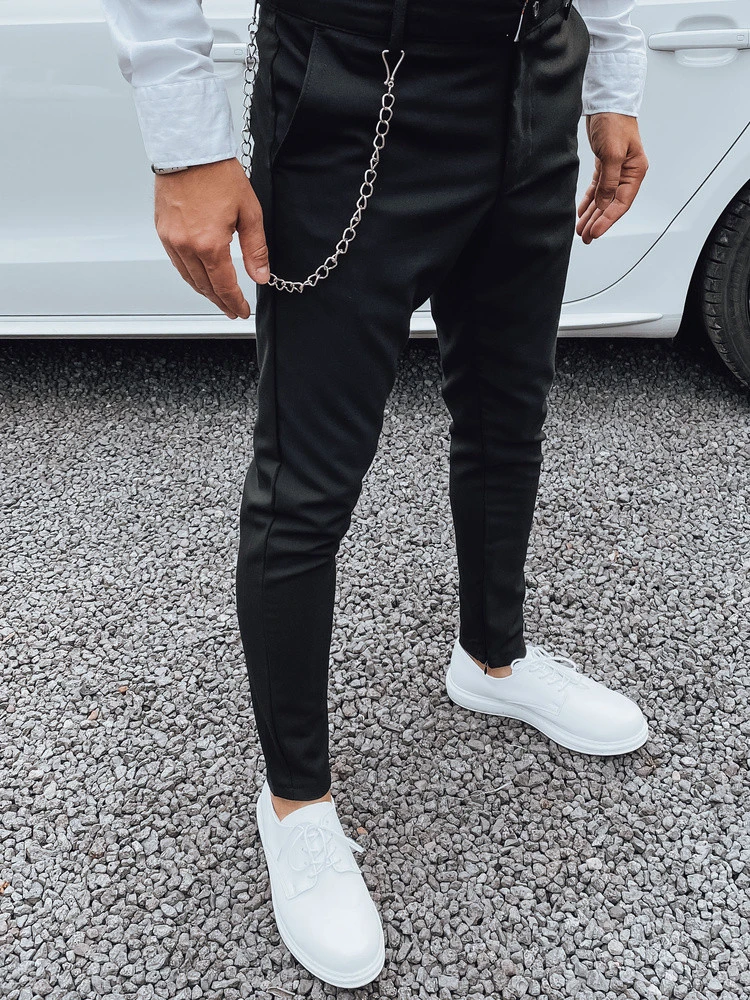 Stylové černé kalhoty s řetízkem jsou ideální volbou pro moderní muže, kteří ocení jedinečný vzhled. Kombinují eleganci s nádechem rebelského stylu, díky čemuž se hodí k různým outfitům. Jsou vyrobeny z kvalitního materiálu, nabízejí odolnost a pohodlí. Řetízek jim dodává jedinečný nádech a podtrhuje individualitu nositele. Ideální na společenské akce, do města i na běžné dny v práci. Objednejte si je nyní a doplňte svůj šatník o tento jedinečný kousek!