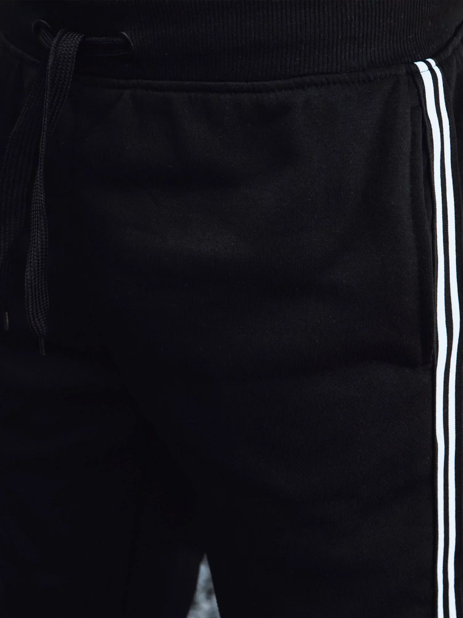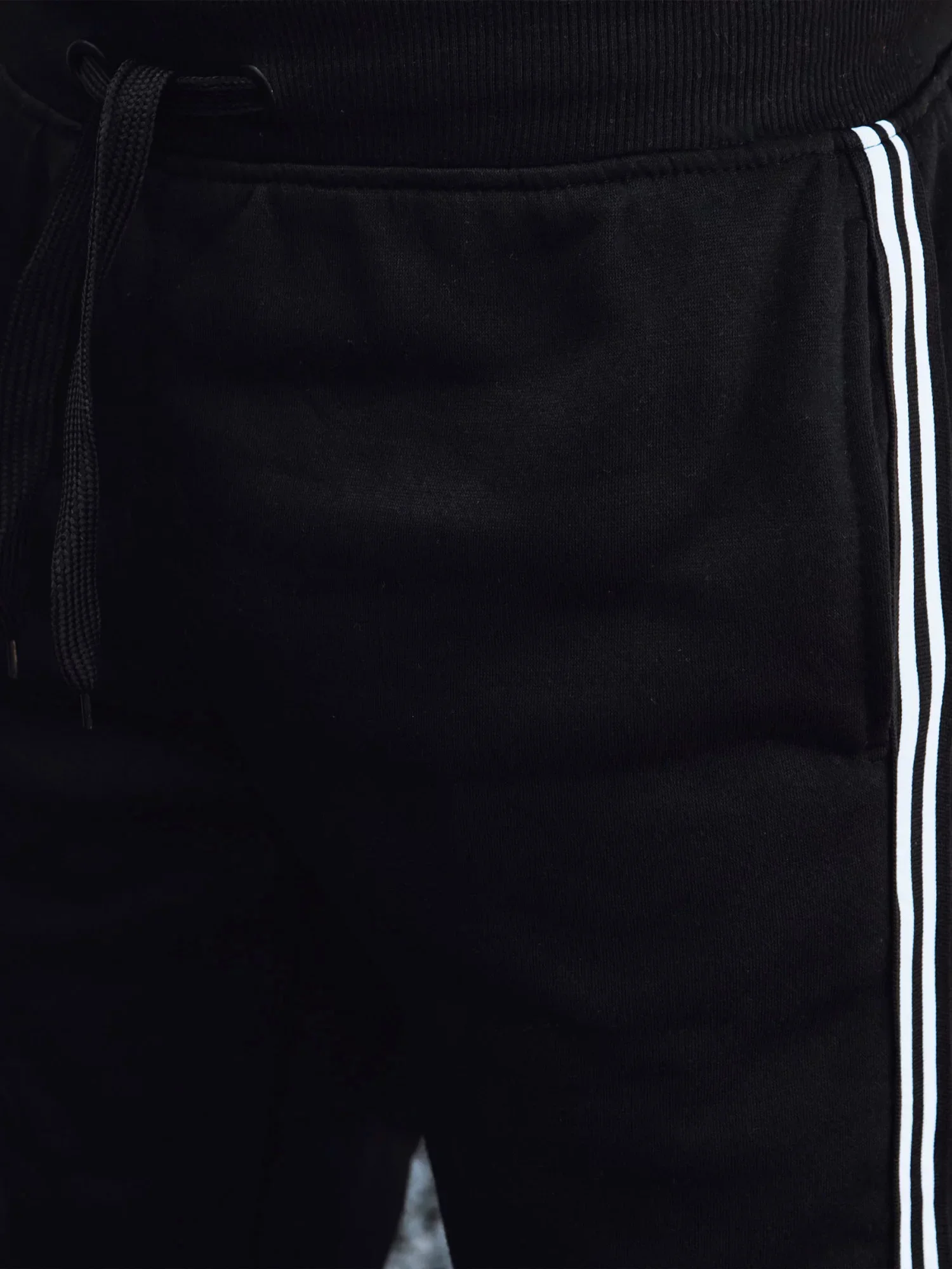 mírně zúžený střih nohavic pasový límec z žebrového úpletu 2:2 s 5 % elastanu, na stažení šňůrkou klínové kapsy dolní lem z žebrového úpletu 2:2 s 5 % elastanu dekorativní prošití vnitřní strana nepočesaná