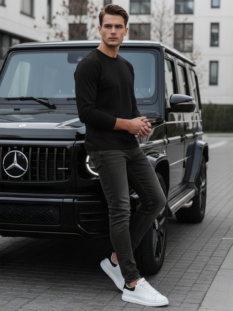 Pánské černé tričko FashionStreet s dlouhým rukávem LX0577