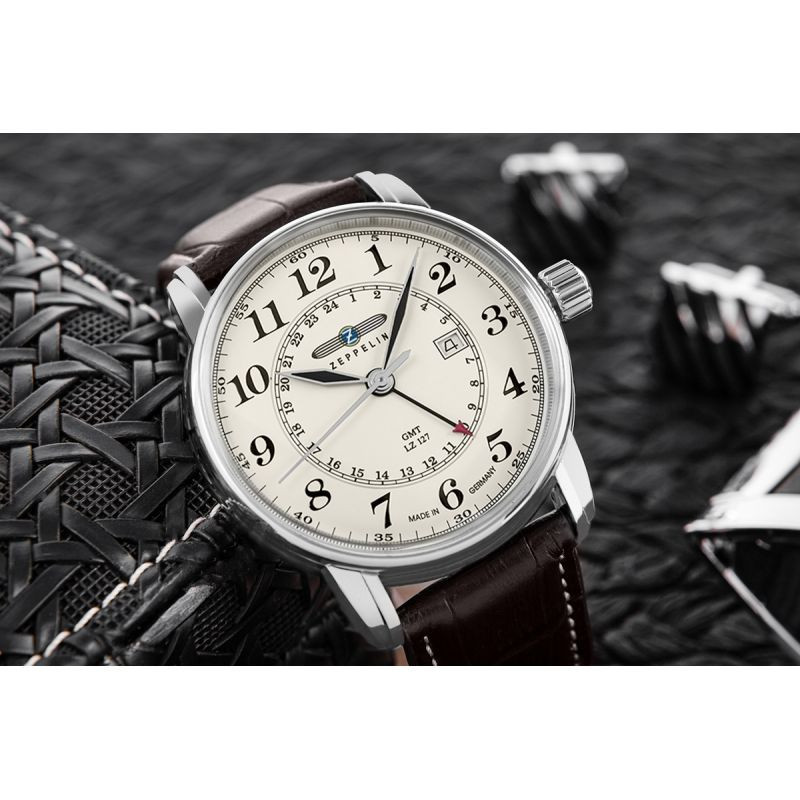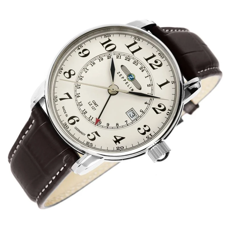 Wybierając czasomierz Zeppelin, zyskujesz zegarek z duszą – pełen historii, precyzji i luksusu, który stanie się Twoim niezawodnym towarzyszem na lata. Kolorystyka zegarka Zeppelin LZ127 Graf Zeppelin GMT to hołd dla klasyki w najlepszym wydaniu, inspirowany elegancją retro i lotniczym duchem przygody. Wskazówka GMT umożliwia odczyt czasu z dwóch stref jednocześnie, idealnie wpasowują się w potrzeby współczesnych podróżników i miłośników precyzji.