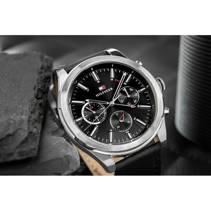 Tommy Hilfiger Ashton na czarnym skórzanym pasku to zegarek stworzony dla mężczyzny, który chce nie tylko kontrolować czas, ale i robić to z prawdziwą klasą. Wyposażony w funkcjonalności takie jak datownik, 24-godzinny format czasu i czytelne indeksy, Ashton łączy wyrafinowany design z praktycznością. Połączenie elegancji z wyraźnym akcentem męskości tworzy czasomierz, który jest jak dobry garnitur — niezawodny, mocny i zawsze na miejscu.