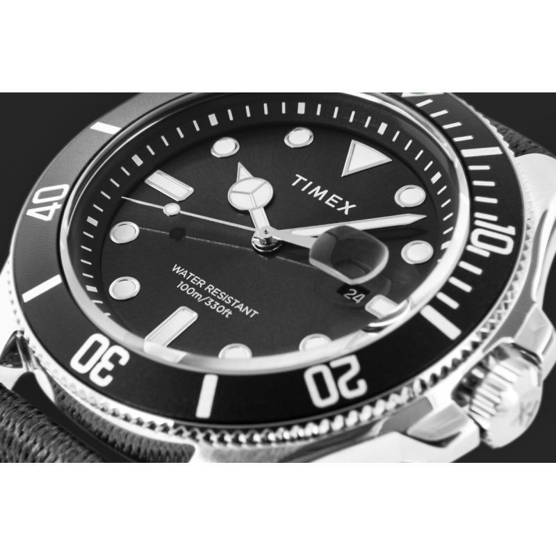 Model zachwyca swoją wypukłą formą koperty, która nadaje mu solidności i męskiego charakteru. Delikatne zaokrąglenia oraz precyzyjne wykończenie koperty nie tylko podkreślają jej elegancki wygląd, ale również zapewniają wygodę noszenia na co dzień. Dodatkowo, obrotowy bezel, z wyraźnymi oznaczeniami minutowymi, wzorowany na profesjonalnych zegarkach nurkowych, dodaje sportowego charakteru i praktyczności. Perfekcję projektu dopełnia koronka zdobiona logo Timex „TX” z solidna osłoną.