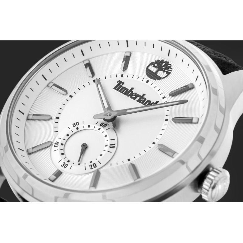 Centralne, subtelnie zagłębione koło otacza dekoracyjny szlif słoneczny, który pięknie łapie światło pod każdym kątem. Wypukłe, polerowane indeksy osadzone na wyższym pierścieniu dodają tarczy przestrzenności i elegancji. Na godzinie 12 dumnie prezentuje się trójwymiarowe logo drzewa Timberland, będące nie tylko detalem, ale wyrazem DNA marki. Całość łączy surową precyzję z nowoczesną estetyką – to tarcza, która żyje i zmienia się w zależności od światła i ruchu.