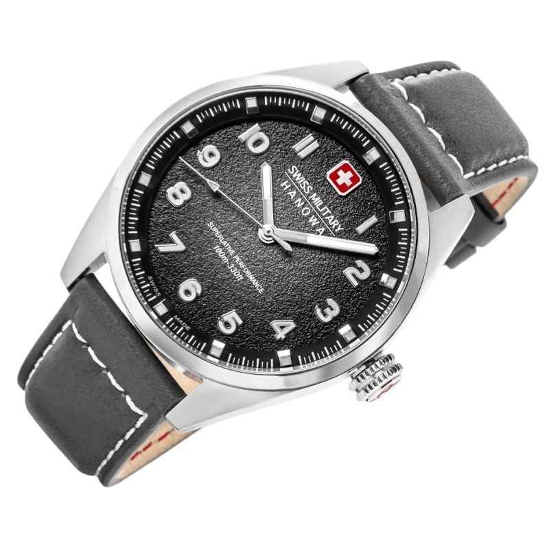 Wizualnie przyciągający i funkcjonalnie imponujący – zegarek HANOWA Greyhound to wybór dla mężczyzn, którzy cenią bezkompromisowy styl i najwyższą jakość. Wyposażony w mechanizm Ronda 503 Swiss Made oferuje dokładność, której możesz zaufać w każdej sytuacji – od spotkań biznesowych po wyprawy w teren. Mechanizm SWISS Made to nie jest tylko napęd wskazówek – to symbol zegarmistrzowskiej tradycji, która łączy technologię z kunsztem. Szafirowe szkło, mocna koperta i doskonale dopasowany skórzany pasek ze stylową klamrą tworzą konstrukcję na lata - do garnituru, ale i do codziennych wyzwań. Dzięki wodoszczelności na poziomie 10 BAR (ATM) oraz zakręcanemu deklowi, zegarek jest odpowiednio zabezpieczony przed wodą i innymi czynnikami zewnętrznymi, co czyni go niezawodnym towarzyszem także w bardziej wymagających warunkach.Czerwone detale w zegarkach Swiss Military Hanowa – jak koronka czy znak krzyża na godzinie 12 symbolizują szwajcarską jakość, siłę i niezawodność, nawiązując bezpośrednio do wojskowego dziedzictwa marki.
