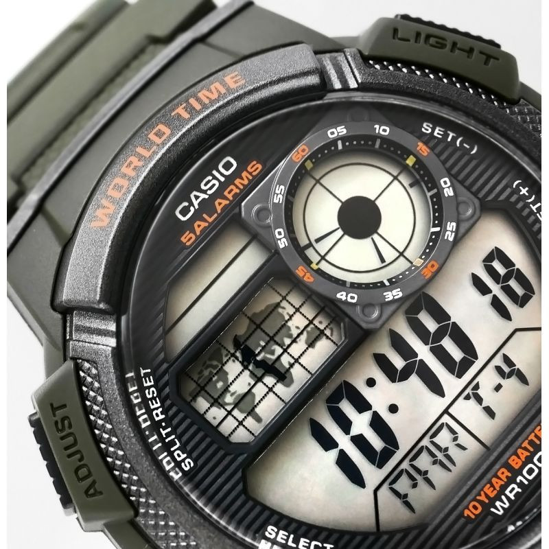 Model CASIO s funkcí Multi Time, světovým časem, stopkami, budíkem x 5 a časovačem - to vše 10 let na jednu baterii. Hodinky Casio AE-1000W jsou hodinky, které s vámi drží krok - ciferník inspirovaný kokpitem letadla jim dodává robustní, technický vzhled, který podtrhuje mužský styl a dynamický životní styl. Díky mapě světa a funkci světového času můžete na první pohled zkontrolovat čas v různých zónách, což je ideální volba pro cestovatele a profesionály pracující v zahraničí. Analogový displej LC zajistí, že budete mít vždy po ruce čas ve svém domovském městě, a vodotěsnost do 100 metrů umožňuje hodinky volně používat i v drsnějších podmínkách. Jsou to hodinky pro muže, kteří očekávají víc - přesnost, odolnost a styl.