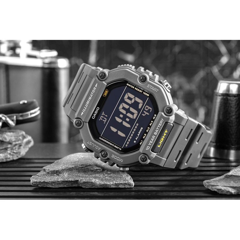 Model CASIO s velkým LCD displejem, který je snadno čitelný a ovladatelný, s robustním geometrickým designem obálky. Hodinky vám dávají možnost sledovat dvě časová pásma současně - ideální pro ty, kteří jsou na cestách nebo pracují v zahraničí. Díky tlačítku na přední straně obálky je přístup k LED podsvícení velmi snadný a intuitivní. Vodotěsnost do 100 metrů a 10letá životnost baterie vám umožní na dlouhou dobu zapomenout na jakoukoli údržbu. Hodinky jsou vybaveny bohatou funkční výbavou: stopkami s přesností na 1/100 sekundy, časovačem s funkcí odpočítávání, 5 multifunkčními alarmy (1 s funkcí snooze), LED podsvícením v jantarové barvě a plně automatickým kalendářem (až do roku 2099). Model, který je ideální, ať už pro sportovní a volnočasové aktivity nebo pro práci či každodenní povinnosti.