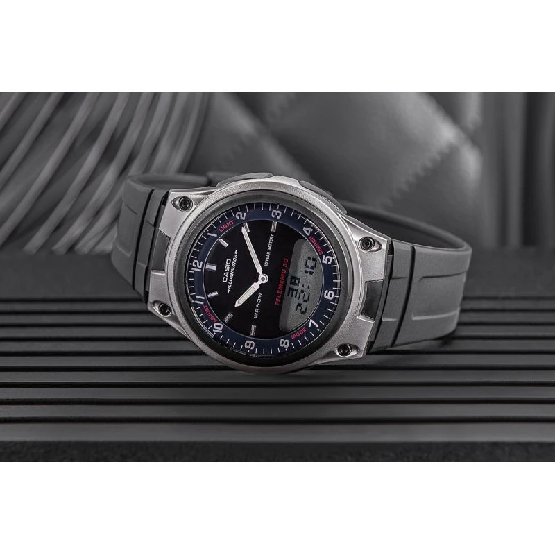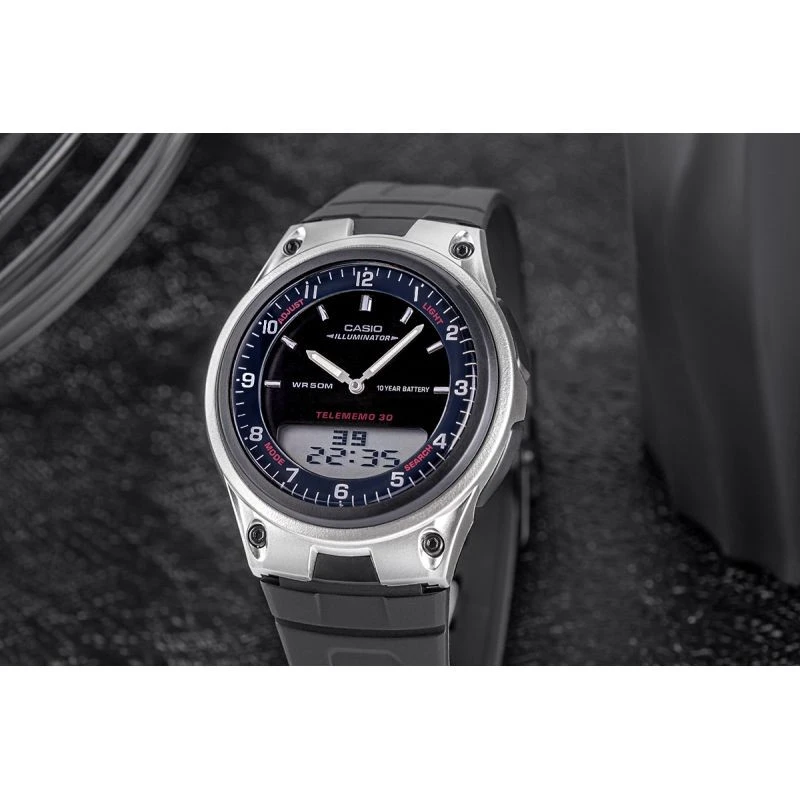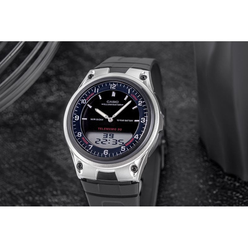 Hodinky Casio AW-80-1AVDF nabízejí funkce, jako je duální displej (analogový a digitální), Telememo 30 pro ukládání kontaktů, alarmy, stopky, časovač a možnost sledovat čas ve 30 časových pásmech. Kromě toho mají vodotěsnost WR50M, životnost baterie až 10 let a podsvícení Illuminator pro čtení ve tmě.