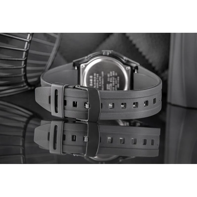 Hodinky jsou vybaveny řemínkem z odolného plastu, což je typické pro modely Casio, které se zaměřují na odolnost a pohodlí. Řemínek je extrémně lehký, takže hodinky jsou pohodlné i při dlouhodobém nošení. Plast neabsorbuje vlhkost, takže hodinky jsou odolnější vůči stříkající vodě. Díky tomu se řemínek nezničí při každodenním kontaktu s vodou, například při mytí rukou nebo lehkém dešti. Plastový řemínek se snadno čistí; stačí jej otřít vlhkým hadříkem, aby se odstranily nečistoty. Plast zřídkakdy způsobuje alergické reakce, takže tyto hodinky jsou bezpečnou volbou pro osoby s citlivou pokožkou.