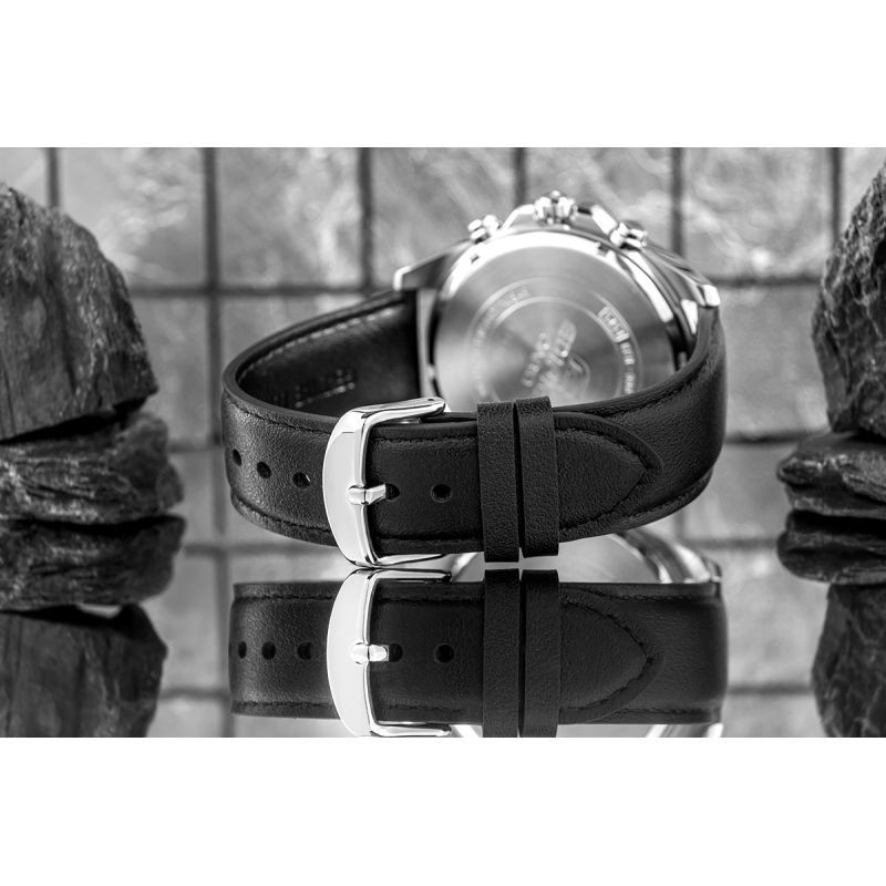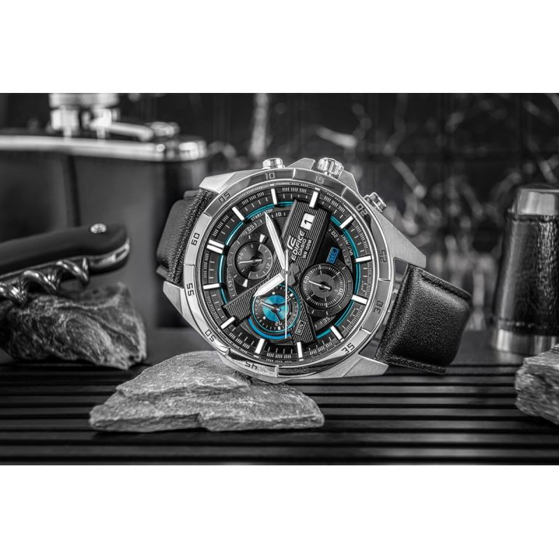 CASIO EDIFICE udowadnia swoją wszechstronność.Bez względu na to, czy postawisz na klasyczny model ze stalową bransoletą, sportowy wariant z elastycznym paskiem, czy elegancką wersję na pasku ze skóry naturalnej – każdyEDIFICE na nadgarstku łączy sportowy styl z wyrafinowanym wyglądem.