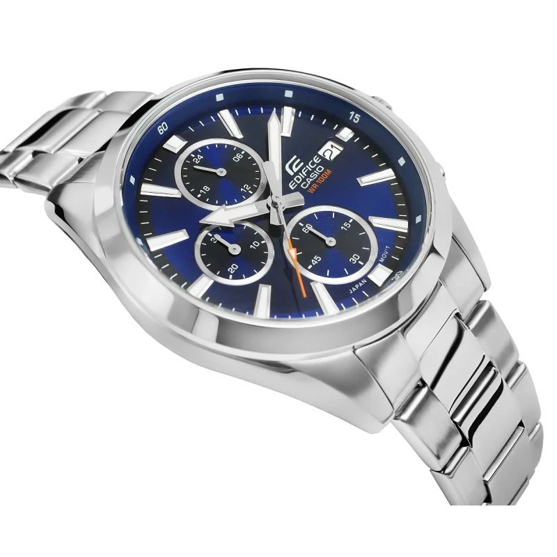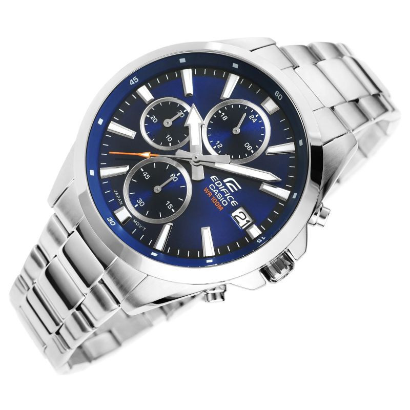 Najděte dokonalou harmonii stylu a přesnosti s klasickým chronografem střední velikosti EDIFICE. rafinovaná kombinace rafinovaných detailů a moderního designu vyniká tenkým rámečkem, který kontrastuje s širokým ciferníkem a dodává hodinkám výrazný, elegantní charakter. vybaveny funkcemi dne v měsíci a chronografy: 24hodinový displej, stopky minut, stopky sekund. díky vodotěsnosti 10 BAR si je můžete bez obav vzít k bazénu, na trénink nebo za vodním dobrodružstvím. fluorescenční podsvícení vám zajistí plnou kontrolu nad časem i po setmění.