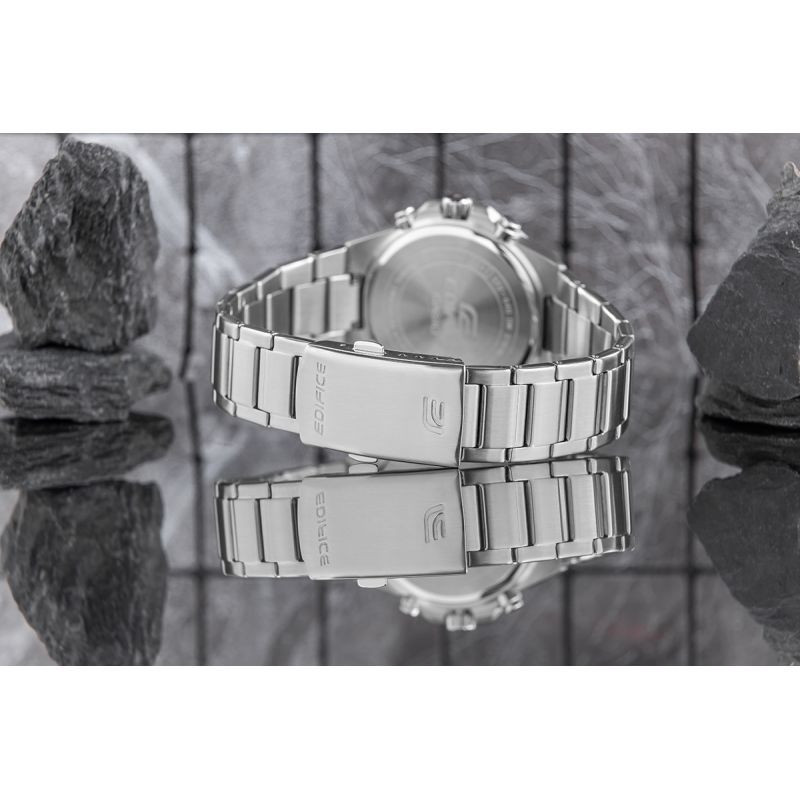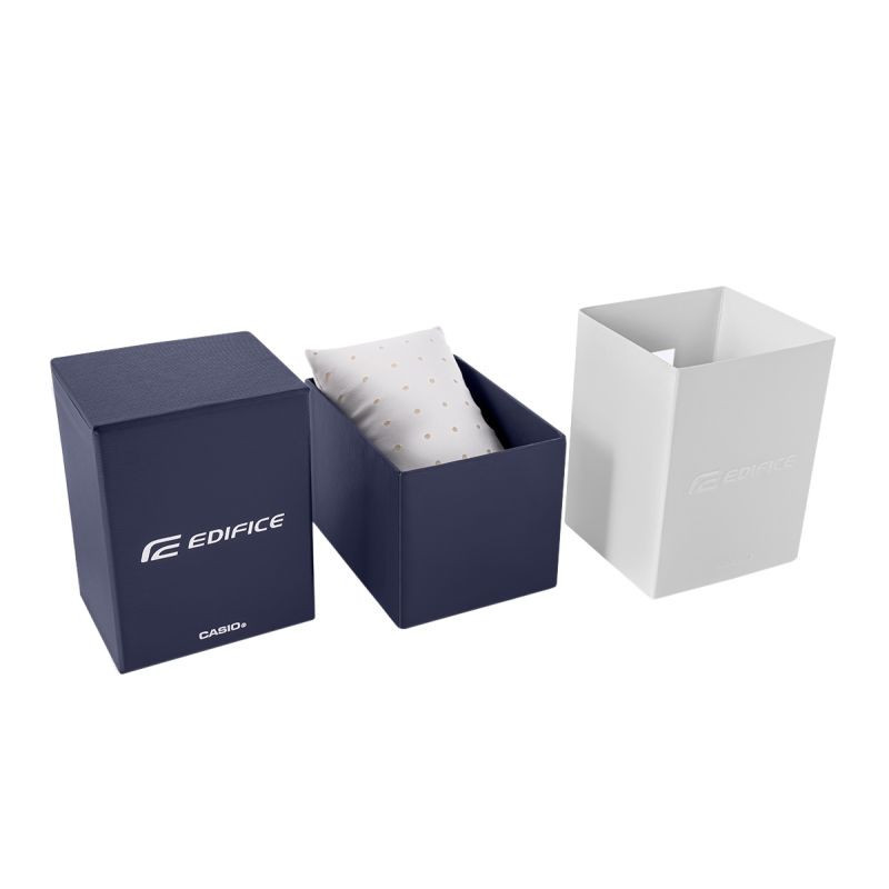 Pohodlný ocelový náramek je dokonalým doplňkem těchto hodinek. Tento typ náramku je zárukou robustnosti a pohodlí při každodenním používání. Pohodlí doplňuje kvalitní ocel, která se pohodlně přizpůsobí mužskému zápěstí. Spona je opatřena logem značky Edifice, což hodinkám dodává na prestiži a zajišťuje jedinečnost mezi ostatními značkami hodinek.