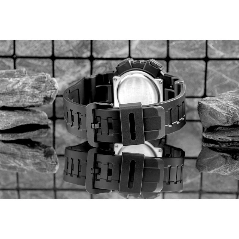 Bardzo lekki, zapewniając komfort w codziennym użytkowaniu, zwłaszcza w przypadku aktywności fizycznej. Materiał żywiczny jest odporny na uszkodzenia mechaniczne, takie jak pęknięcia czy złamania, co czyni go idealnym wyborem do zegarków przeznaczonych do intensywnego użytkowania. Resin jest odporny na wilgoć, działanie wody, a także na zmiany temperatury, co sprawia, że paski te doskonale sprawdzają się w trudnych warunkach. Paski resinowe są łatwe do czyszczenia - wystarczy przetrzeć je wilgotną ściereczką, aby usunąć zabrudzenia.