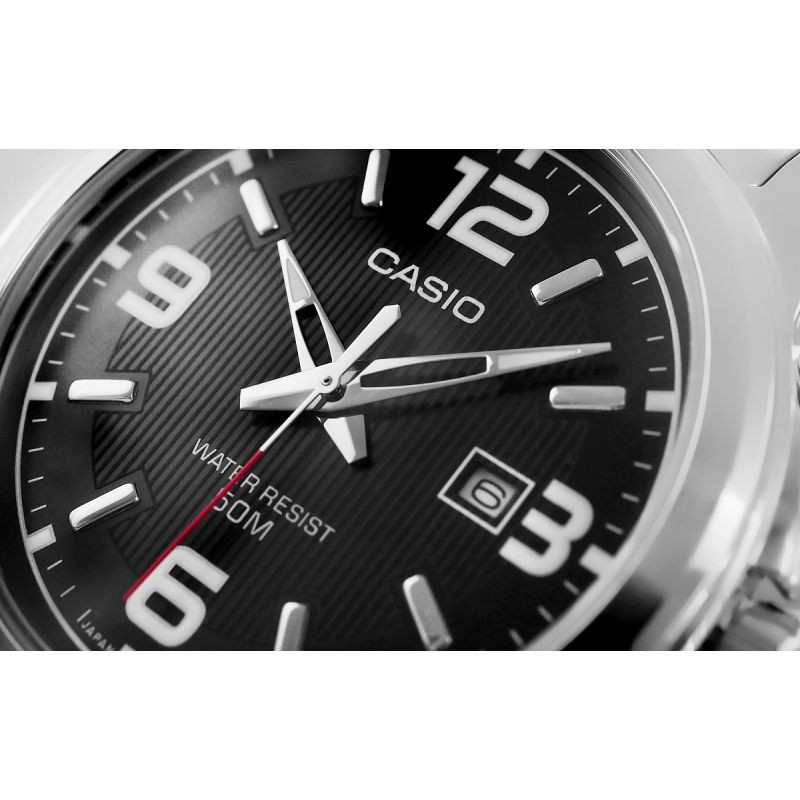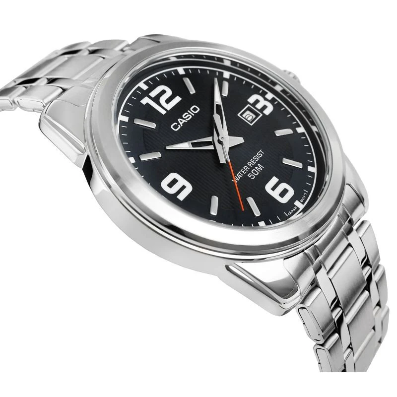 Model CASIO MTP-1314PD-1AVEF łączy w sobie ponadczasowy design z codzienną praktycznością. Czarna tarcza z delikatną teksturą i wyraźnie zaznaczonymi indeksami oferuje doskonałą czytelność. Duże cyfry arabskie na godzinie 12, 3, 6 i 9 w połączeniu ze smukłymi wskazówkami tworzą nowoczesną kompozycję, podkreśloną przez subtelny czerwony sekundnik. Datownik umieszczony na trzeciej godzinie dodaje funkcjonalności, nie zakłócając harmonii projektu. Stalowa koperta i bransoleta o satynowym wykończeniu nadają zegarkowi elegancji, która sprawdzi się zarówno w biurze, jak i na co dzień. Wodoodporność do 50M zapewnia niezawodność w różnych warunkach. Casio MTP – wybór mężczyzny, który stawia na solidność, styl i ponadczasową estetykę.