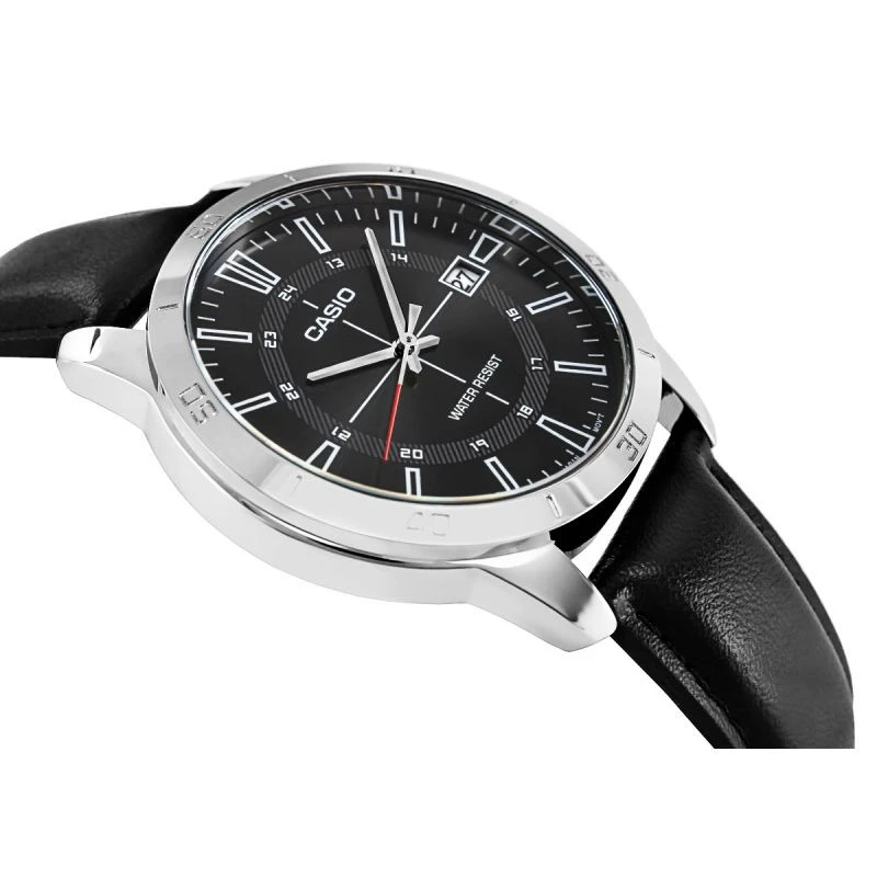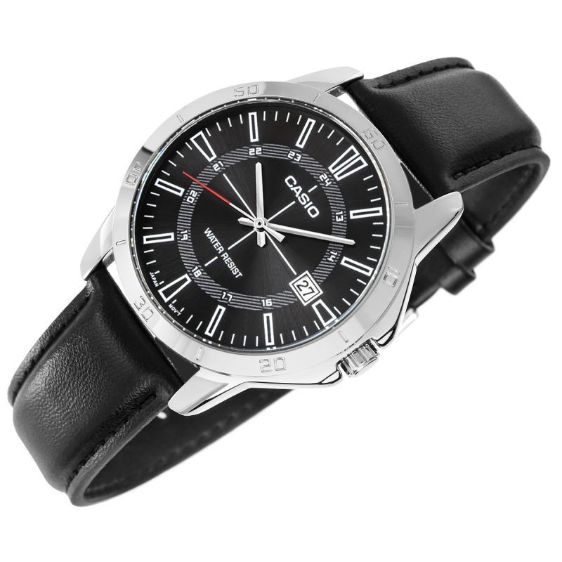 Klasické analogové hodinky CASIO navržené s nadčasovým vzhledem hodinových, minutových a vteřinových ručiček - ideální pro každodenní i formálnější příležitosti. Černé pozadí doplňuje soustředný vzor s 24hodinovým kroužkem a červená vteřinová ručička pro sportovní nádech. Štíhlé lineární indexy a praktická ručička s datem dne v týdnu na 3. hodině kombinují stylový vzhled s funkčním pohodlím. Hodinky jsou voděodolné pro každodenní použití, můžete se cítit bez obav při mytí rukou nebo v deštivém počasí. Jednoduchý, elegantní akcent, který doplní každý styl.