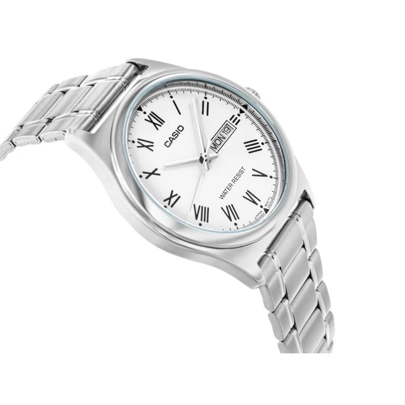 Casio MTP-V006D to model, który powstał z myślą o tych, którzy cenią czystość linii i ponadczasowe wzornictwo - bez zbędnych detali, za to z pełnym szacunkiem do klasyki. Zegarek wyposażonowsmukłą, 38-milimetrową kopertę oraz przejrzystą tarczę, na której osadzono delikatne wskazówki i eleganckie rzymskie indeksy. Zegarek zaprojektowany jest w oparciu o ponadczasowy układ wskazówek – godzinowej, minutowej i sekundowej, dlatego z łatwością dopasuje się zarówno do codziennych, jak i bardziej formalnych okazji. Harmonijny układ dopełnia funkcjonalny datownik na godzinie 3 – dyskretny, ale praktyczny. Całość emanuje spokojem, porządkiem i estetyką, która broni się sama. Stalowa bransoleta nadaje zegarkowi wyrafinowany charakter, który odnajduje się zarówno przy mankiecie koszuli, jak i przy swobodniejszym stroju – idealny do pracy, na spotkania, jak i na co dzień.