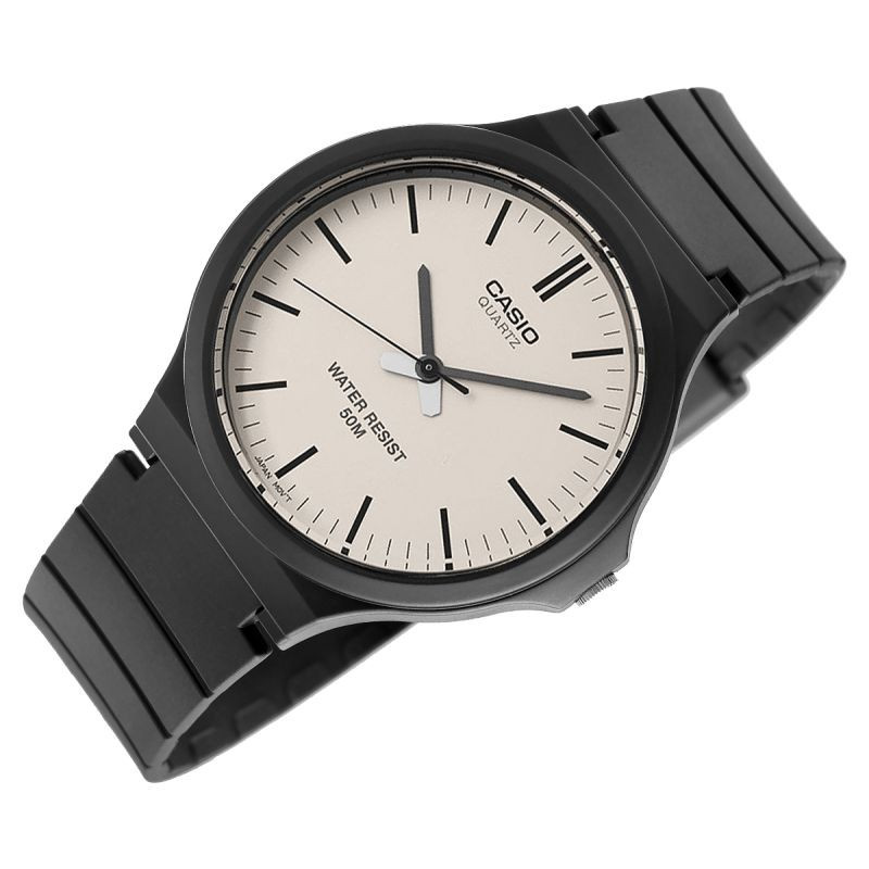 Pánské hodinky CASIO MW-240 kombinují minimalismus, funkčnost a pohodlí v mužném designu. Díky lehké konstrukci hodinek (pouhých 35 g!) jsou na zápěstí téměř nepostřehnutelné. Pružný matný řemínek z pryskyřice se přizpůsobí vašim pohybům, je odolný proti opotřebení a připravený na každou situaci - od schůzky až po trénink. Velké kontrastní indexy vám umožní zkontrolovat čas na první pohled. Odolné sklíčko z pryskyřice zaručuje odolnost proti každodennímu opotřebení a vodotěsnost 5 BAR zajistí, že stříkající voda, déšť ani rychlá sprcha nebudou problém.