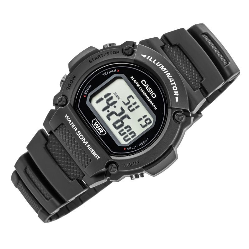 Hodinky Casio W-219H jsou vybaveny řadou praktických funkcí, které je předurčují ke každodennímu používání. Mají LED podsvícení pro snadné čtení ve tmě, stopky s přesností 1/100 sekundy s možností měření uplynulého času, mezičasu a výsledků na prvním a druhém místě. Dále mají denní budík, hodinový signál, automatický kalendář a možnost volby 12- nebo 24hodinového formátu. Na displeji se zobrazují hodiny, minuty, sekundy, den v týdnu a datum. Hodinky mají vodotěsnost do 50 metrů a dlouhou výdrž baterie, což z nich činí spolehlivého a praktického každodenního společníka.