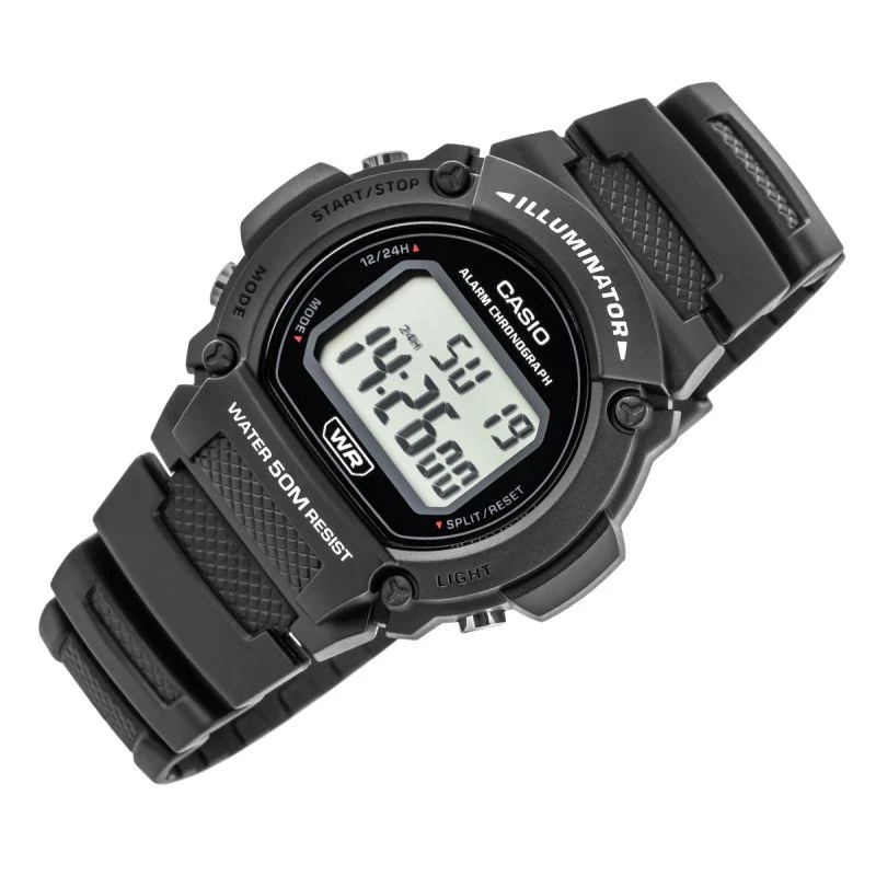 Zegarek męski Casio W-219H-1AVDF to solidny i niezawodny model o sportowym charakterze, idealny do codziennego noszenia. Wyposażony w czytelny wyświetlacz cyfrowy, zapewnia wygodny odczyt godziny i funkcji, a jego lekka obudowa z tworzywa sprawia, że nosi się go bardzo komfortowo. Zegarek oferuje podstawowe, ale przydatne funkcje, takie jak stoper, alarm, sygnał godzinowy i podświetlenie, dzięki czemu świetnie sprawdza się w codziennych sytuacjach, także po zmroku. Ma wodoszczelność na poziomie 50 metrów, co wystarcza do mycia rąk czy kontaktu z wodą podczas deszczu. Jego prosty, sportowy design pasuje zarówno do codziennych, jak i bardziej luźnych stylizacji. Model ten ceniony jest za trwałość, niezawodność i bardzo dobry stosunek jakości do ceny. To zegarek dla mężczyzn, którzy cenią praktyczność, klasykę i funkcjonalność bez zbędnych dodatków – po prostu urządzenie, które zawsze działa i dobrze wygląda.