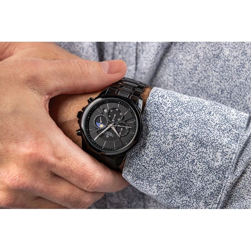 Zegarek męski Giewont GW9460-B1 to imponujące połączenie nowoczesnej energii i ponadczasowej elegancji. Ten model powstał z myślą o mężczyznach, którzy nie idą na kompromisy – chcą wyrażać siebie poprzez detale, a jednocześnie podkreślać swój charakter i wyjątkowość. Jego głęboka, wyrazista czerń tworzy aurę dobrego doznania, a perfekcyjnie dopracowane elementy tarczy budują wrażenie harmonii. To zegarek, który nie tylko zdobi nadgarstek – on definiuje styl. Subtelna elegancja połączona z nowoczesną, zdecydowaną linią sprawia, że model Giewont GW9460-B1 staje się naturalnym przedłużeniem osobowości mężczyzny pewnego siebie, świadomego swojej wartości i przywiązania do dobrego stylu. Nosząc go, nie musisz niczego udowadniać. Ten zegarek mówi wszystko za Ciebie: o Twojej klasie, niezależności i umiejętności dokonywania wyborów, które robią różnicę. Każda stylizacja zyskuje dzięki niemu wyjątkowy charakter, a każda chwila staje się bardziej wyrazista. Ten model zegarka to znacznie więcej niż czasomierz. To prestiżowy symbol stylu życia, w którym liczy się jakość, spójność i elegancja wyrażana w najpiękniejszej formie.
