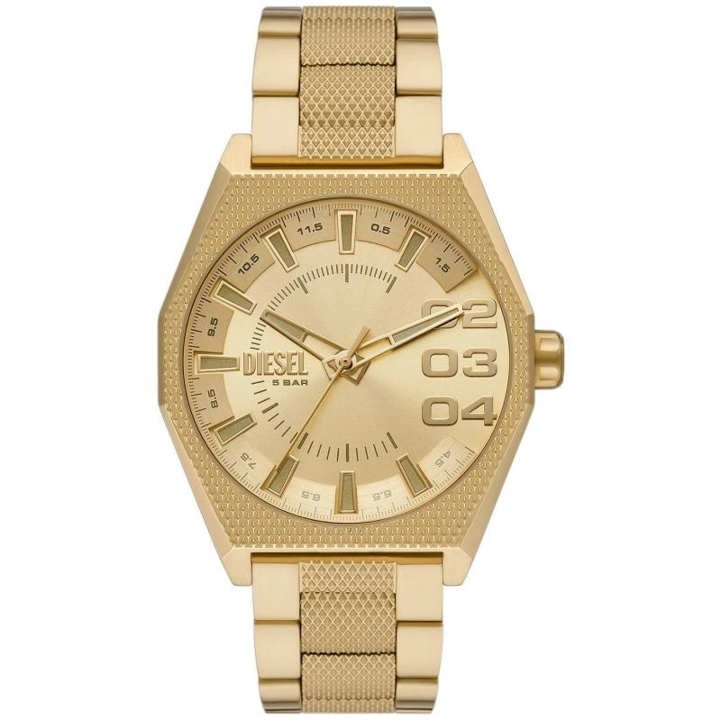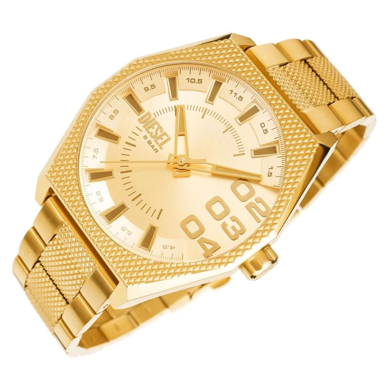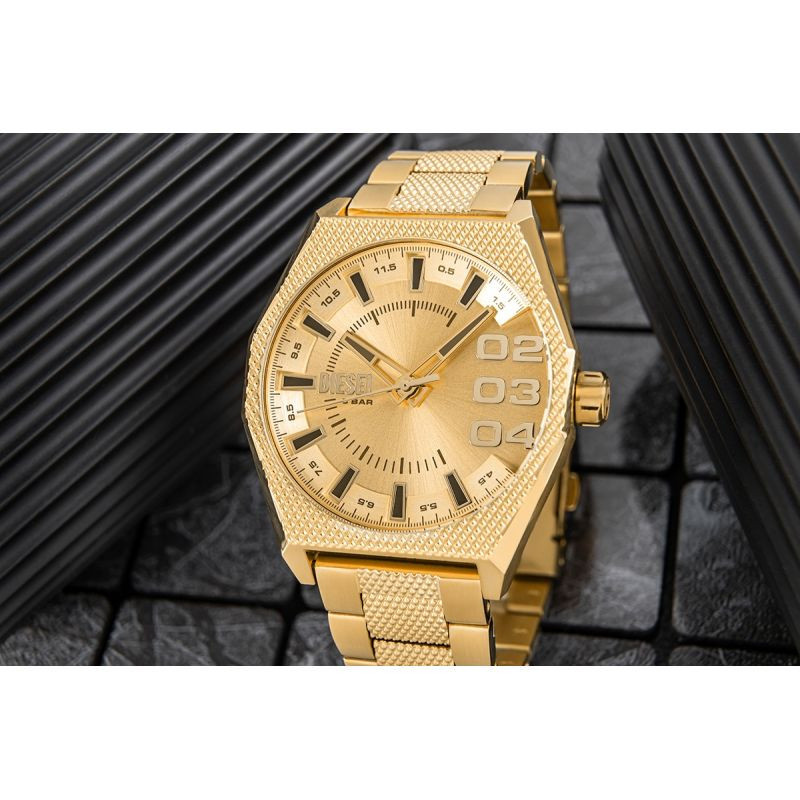 Hodinky Diesel Scarper DZ2173 jsou hodinky, které upoutají pozornost a vzbudí respekt. Jejich zlatý šestihranný plášť a masivní náramek vyzařují dominanci a vytvářejí doplněk, který řekne víc než tisíc slov. Každý detail - od gravírované textury až po trojrozměrné číslice na ciferníku - podtrhuje jejich strohou, ale luxusní estetiku.