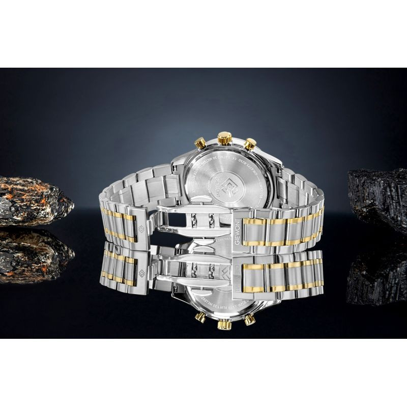 Pánské hodinkyGiewontGW6310-B6 jsoumodelem určeným pro muže, který očekává výrazný charakter, spolehlivou konstrukci a funkčnost připravenou zvládnout rytmus každodenních úkolů. Jejich ciferník s přesným rozložením dílčích ciferníků chronografu představuje dynamický, čitelný design, který zdůrazňuje moderní a lehce sportovní profil hodinek, přestože se jedná o klasiku. Každý prvek byl uspořádán s ohledem na intuitivní čtení a estetickou harmonii, takže celek působí dojmem dokonale navrženého nástroje času.