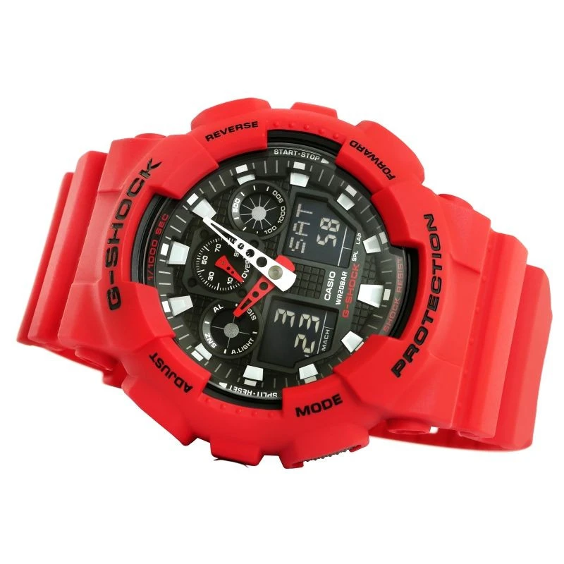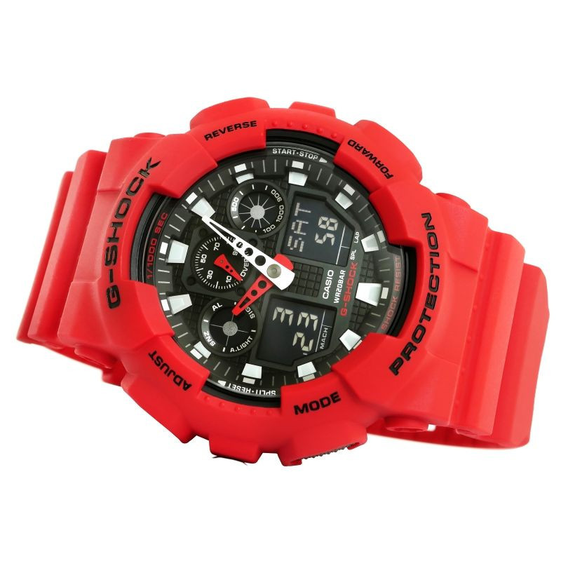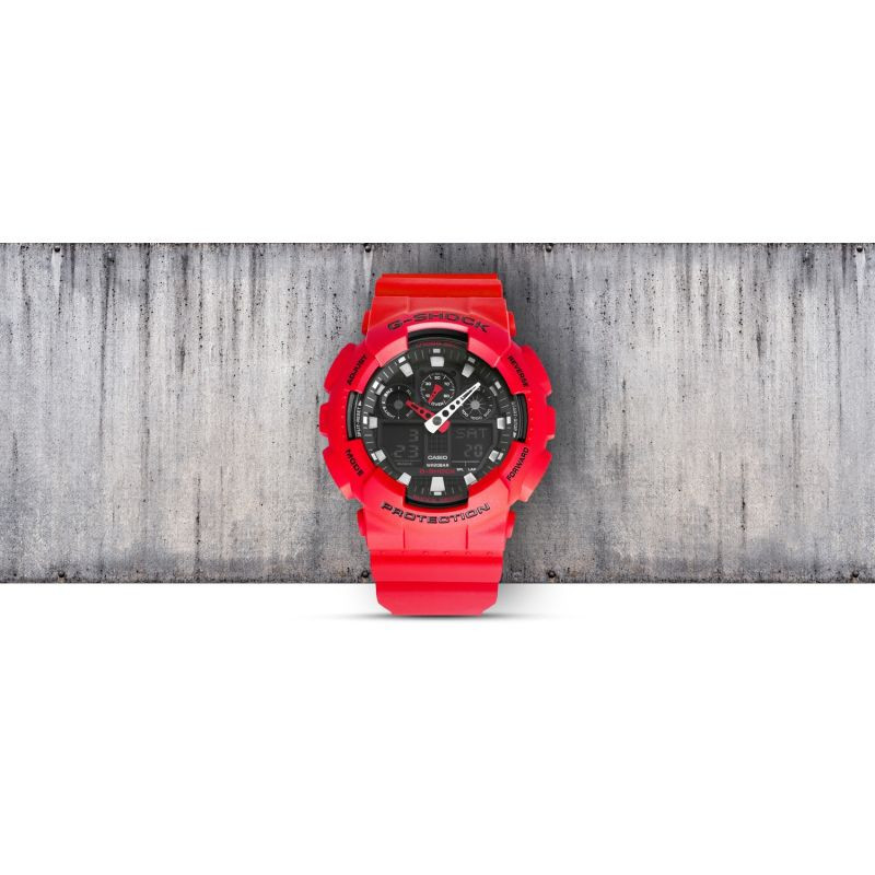 Pánské hodinky CASIO G-SHOCK GA-100B-4AER jsou vybaveny těmito funkcemi: Stopky, Alarmx5, Budík. Datum. Podsvícení - k osvětlení těchto hodinek slouží LED dioda, která tlumeným i jasným světlem dostatečně osvětlí ciferník. Světový čas, čtení různých časových pásem. Automatický kalendář s předprogramovanými daty až do roku 2099, v případě kratších měsíců si hodinky datum upraví samy. Časovač 1/10 - s. Hodinky jsou vybaveny funkcí odpočítávání, nastavitelnou od 1 s do 24 hodin.