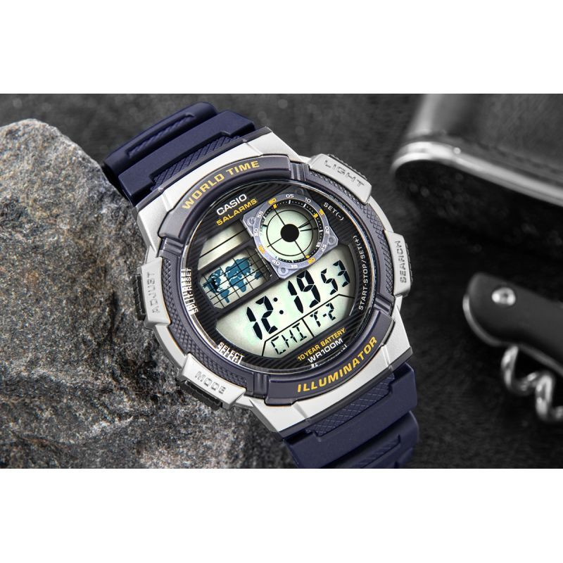 Model CASIO s funkcí Multi Time, světovým časem, stopkami, budíkem x 5 a časovačem - to vše 10 let na jednu baterii. Hodinky Casio AE-1000W jsou hodinky, které s vámi drží krok - ciferník inspirovaný kokpitem letadla jim dodává robustní, technický vzhled, který podtrhuje mužský styl a dynamický životní styl. Díky mapě světa a funkci světového času můžete na první pohled zkontrolovat čas v různých zónách, což je ideální volba pro cestovatele a profesionály pracující v zahraničí. Analogový displej LC zajistí, že budete mít vždy po ruce čas ve svém domovském městě, a vodotěsnost do 100 metrů umožňuje hodinky volně používat i v drsnějších podmínkách. Jsou to hodinky pro muže, kteří očekávají více - přesnost, odolnost a styl.