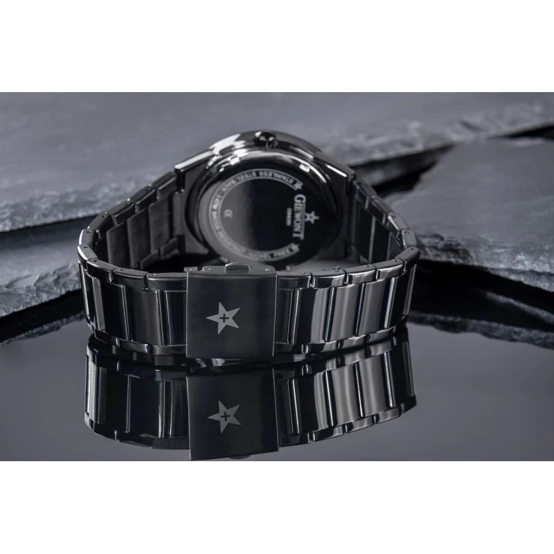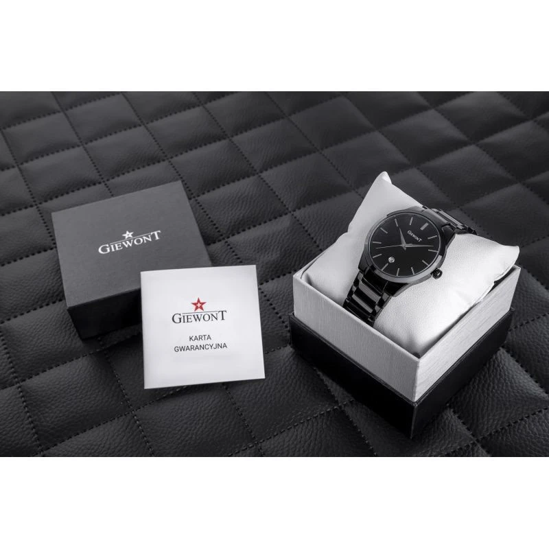 Komfortní ocelový náramek je vynikajícím doplňkem těchto hodinek. Typ náramku je zárukou pevnosti a pohodlí při každodenním používání. Komfort dotváří odpovídající kvalita oceli, která se pohodlně přizpůsobí mužskému zápěstí. Zapínání je signováno logem značky Giewont, což zvyšuje prestiž hodinek a zajišťuje jedinečnost mezi ostatními značkami hodinek.