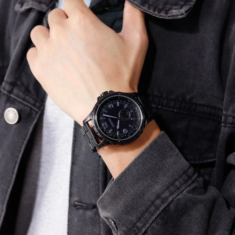 Zegarek Skmei 1513BK to czysta, męska elegancja w najciemniejszym, wyrazistym wydaniu. Całkowicie czarny design – od koperty, przez tarczę, aż po bransoletę – tworzy mocną, tajemniczą aurę, która przyciąga spojrzenia. To zegarek dla mężczyzny, który ceni minimalizm i pewność siebie – klasyczny, surowy, a zarazem pełen wyrafinowania.
