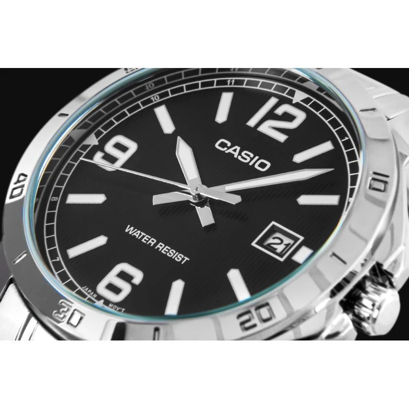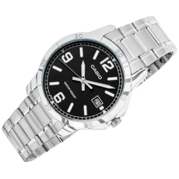 Męski model z kolekcji CASIO wyposażony w klasyczną 40-milimetrową kopertę ze stali nierdzewnej oraz czytelną tarczę z delikatną, pionową fakturą nadająca głębi. Wyraziste indeksy godzinowe, duże cyfry arabskie oraz dodatkowa skala minutowa na wewnętrznym pierścieniu gwarantuje świetną czytelność i ułatwiają orientację w czasie. Funkcjonalny datownik umieszczony przy godzinie trzeciej umożliwia szybki podgląd aktualnego dnia miesiąca, a wodoodporność na poziomie WR gwarantuje bezpieczeństwo użytkowania w codziennych sytuacjach. Dziękibransolecie ze stali szlachetnej o matowym wykończeniu zegarek zyskuje elegancki charakter, który pasuje zarówno do garnituru, jak i do luźniejszego, miejskiego stylu. Mechanizm kwarcowy zapewnia precyzję i niezawodność, z której słynie marka Casio.
