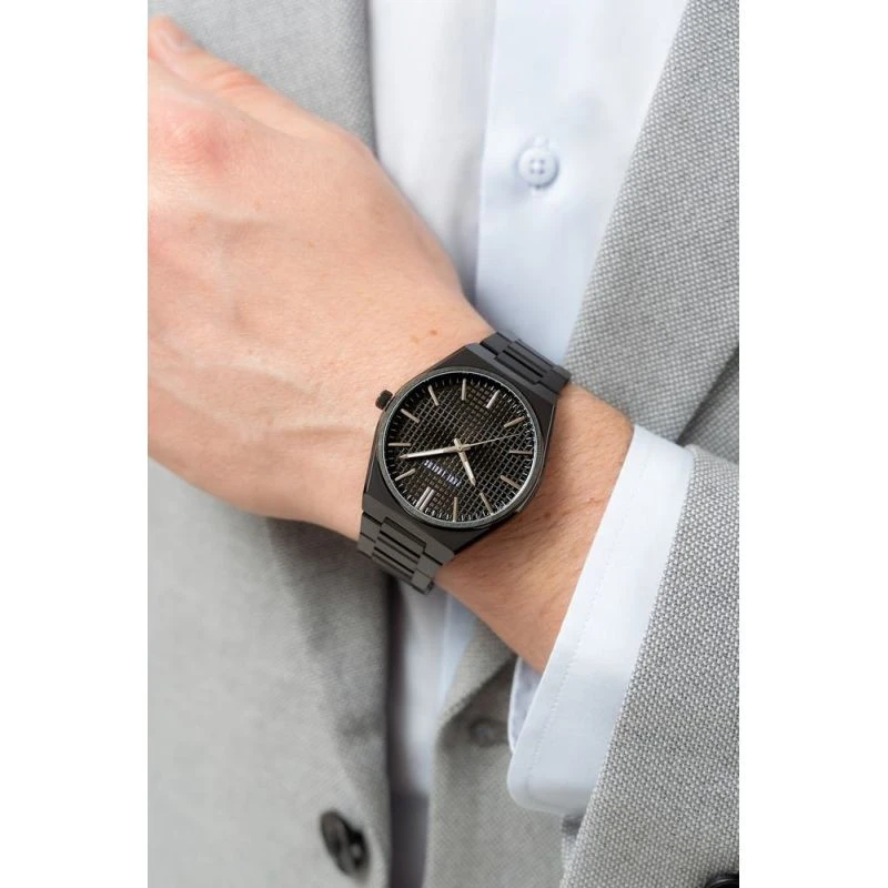Wykonana z najwyższej jakości stali nierdzewnej to połączenie niezłomnej trwałości i luksusowego wykończenia, które robi wrażenie od pierwszego spojrzenia. Jej mocna, solidna konstrukcja zapewnia niezawodność i pewność, że zegarek będzie leżeć perfekcyjnie, bez względu na to, jak wymagający będzie Twój dzień. Precyzyjnie wykonane zapięcie, opatrzone wytłoczonym logo, dopełnia ten mocny, męski charakter, dodając odrobinę elegancji i prestiżu. Wielostopniowy mechanizm zapięcia zapobiega przypadkowemu odpięciu zegarka.