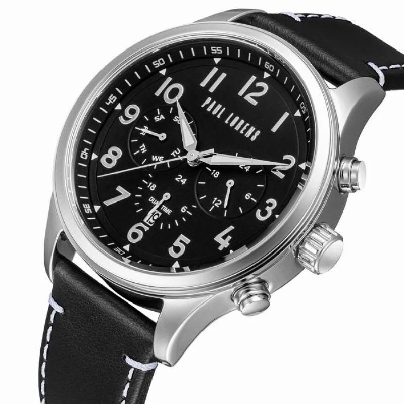 Zegarek męski Paul Lorens PL20011A to elegancki i funkcjonalny czasomierz, który doskonale sprawdzi się zarówno na co dzień, jak i podczas bardziej formalnych okazji. Łączy nowoczesny design z wysoką jakością wykonania, zapewniając użytkownikowi niezawodność oraz stylowy wygląd. Model z kopertą 46 mm, wytrzymałym skórzanym paskiem oraz czarną tarczą emanuje męskim stylem, tworząc unikalną kompozycję, która wyróżni Cię w każdym towarzystwie. To nie tylko zegarek, to manifest Twojego wyrafinowanego gustu, który przyciąga spojrzenia i wzbudza respekt w każdej sytuacji.
