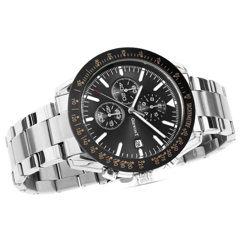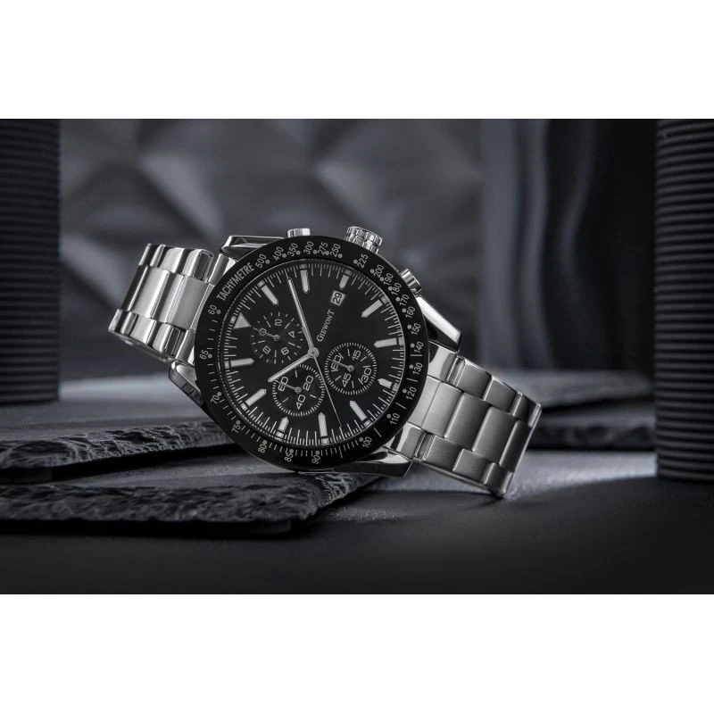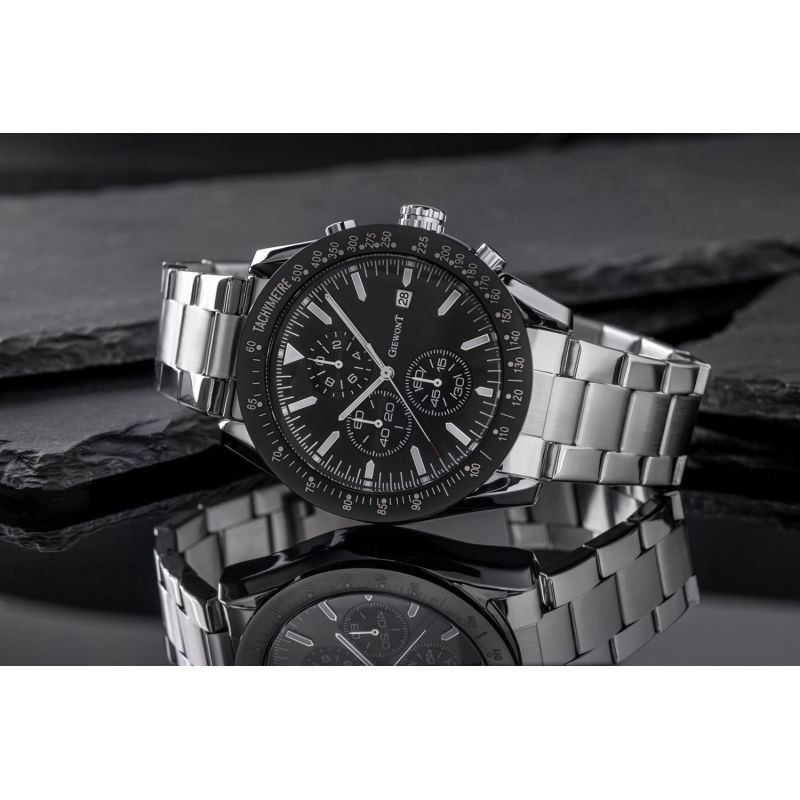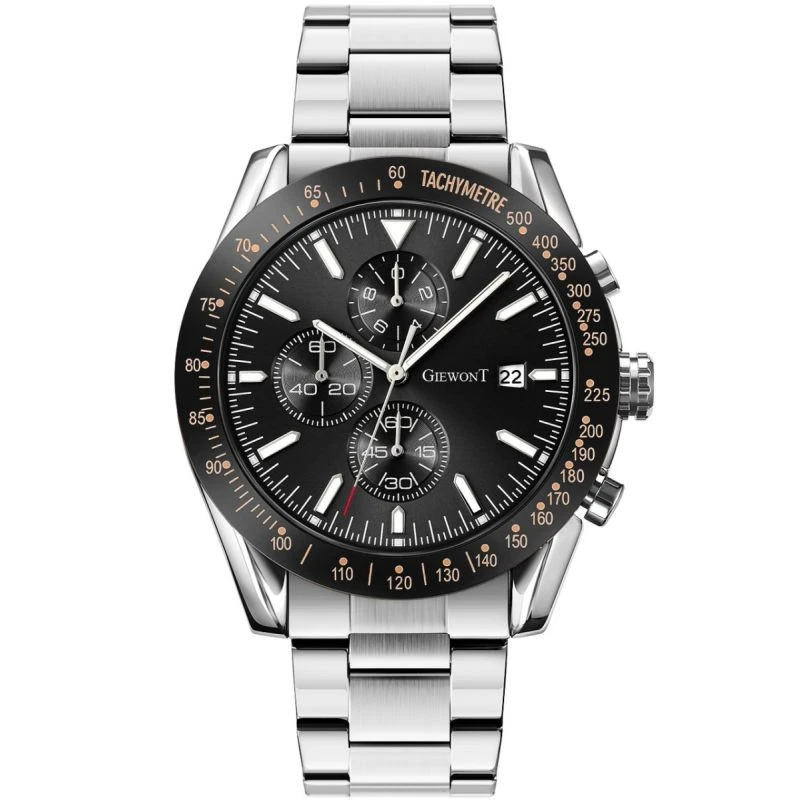 Zegarek męski Giewont GW8620-1 wyposażony jest w chronografy sekund stopera, minut stopera, trybu czasu 24-godzinnego oraz datownik dni miesiąca.