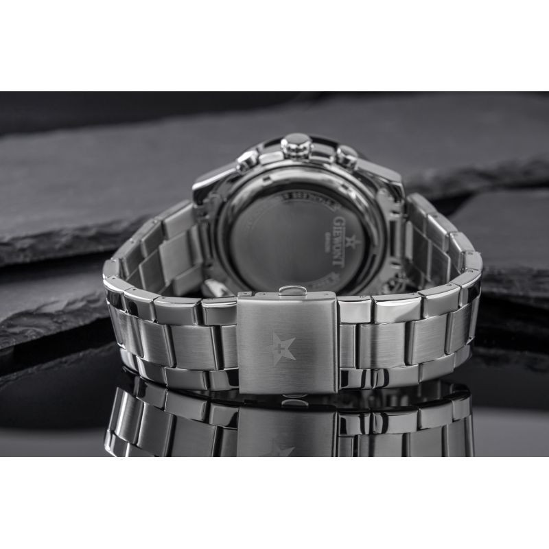 Komfortowa, stalowa bransoleta to znakomite uzupełnienie tego zegarka. Rodzaj bransolety jest gwarancją solidności i wygody podczas codziennego użytkowania. Komfort dopełnia odpowiednia jakość stali, która komfortowo dopasowuje się do męskiego nadgarstka. Zapięcie sygnowane jest logiem marki Giewont, co podnosi prestiż zegarka i zapewnia wyjątkowość na tle innych marek zegarków.