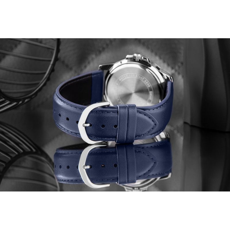 Wykonany z wysokogatunkowej, naturalnej skóry, zachwyca swoją miękkością i precyzją wykonania już przy pierwszym kontakcie. To nie tylko stylowy element, ale także niezawodny towarzysz na co dzień – doskonale układa się na nadgarstku, zapewniając wygodę przez cały dzień. Skóra ta z czasem nabiera jeszcze większego charakteru, pięknie się starzejąc i nadając zegarkowi niepowtarzalny wygląd. Dzięki naturalnym właściwościom skóry, pasek "oddycha", co sprawia, że noszenie zegarka na skórzanym pasku jest wyjątkowo przyjemne i komfortowe.