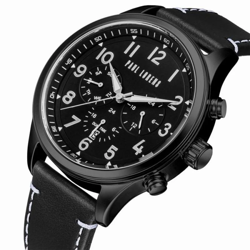 Pánské hodinky Paul Lorens PL20011A jsou elegantní a funkční hodinky, které se skvěle hodí jak pro každodenní nošení, tak pro formálnější příležitosti. Kombinují moderní design s vysokou kvalitou zpracování a poskytují svému nositeli spolehlivost a stylový vzhled. Díky 46mm obálce, odolnému koženému řemínku a černému ciferníku vyzařuje tento model mužný styl a vytváří jedinečnou kompozici, díky níž vyniknete v každé společnosti. Nejsou to jen hodinky, ale manifest vašeho vytříbeného vkusu, který přitahuje pohledy a budí respekt v každé situaci.