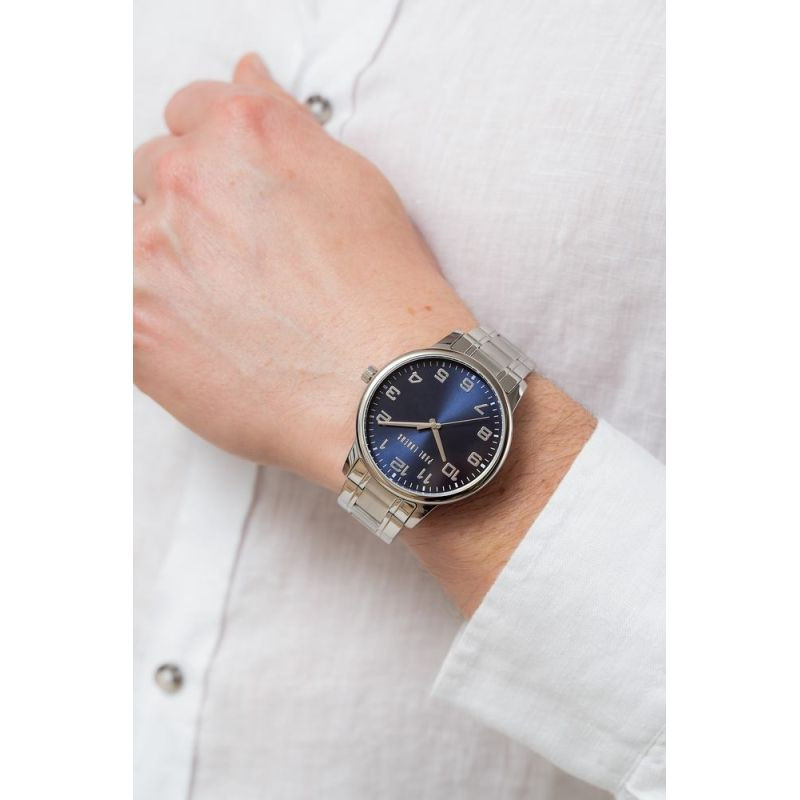 Náramek je vyroben z nejkvalitnější ušlechtilé oceli a kombinuje nezlomnou odolnost s luxusní povrchovou úpravou, která zaujme na první pohled. Jeho silná, robustní konstrukce zaručuje spolehlivost a jistotu, že hodinky budou perfektně ležet, ať už je váš den jakkoli náročný. Precizně provedená spona s vyraženým logem dotváří tento silný, mužný charakter a dodává mu nádech elegance a prestiže. Vícestupňový mechanismus zapínání zabraňuje náhodnému rozepnutí hodinek.