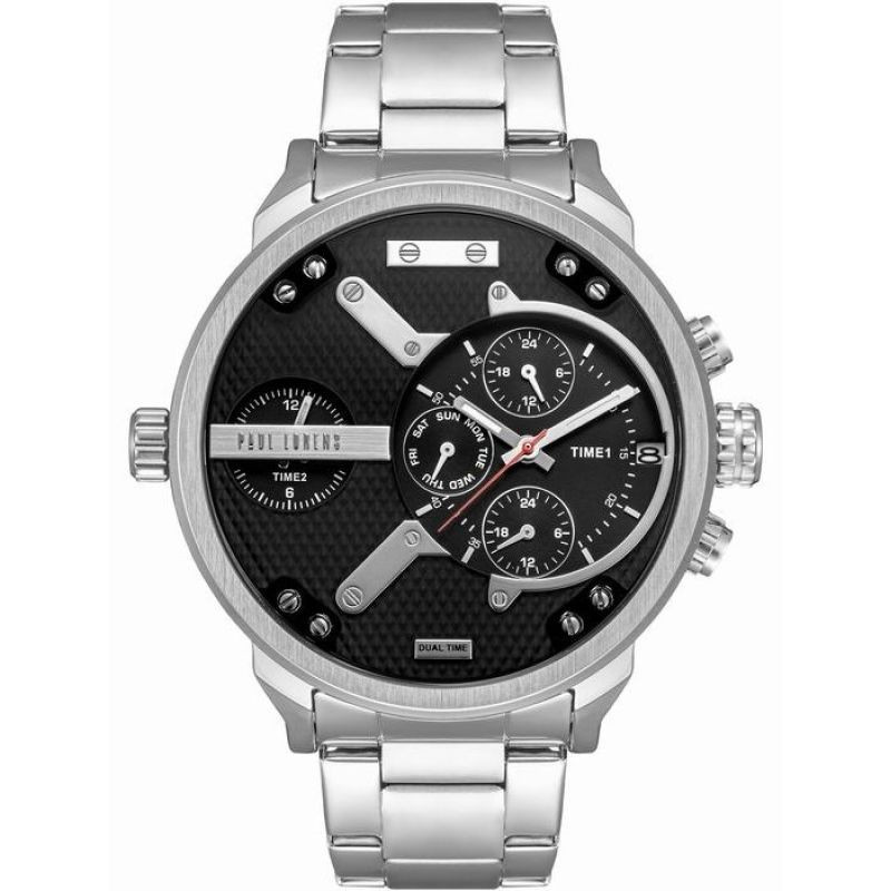 Mocný, silný a nápadný. Černý strukturovaný obal je kvintesencí síly a strohosti - dokonale odpovídá mužnému industriálnímu stylu, který Paul Lorens dotáhl k dokonalosti. Masivní obal o průměru 50 mm dodává pocit síly, který chce mít na zápěstí každý muž. Stříbrné šroubky a industriální prvky dodávají hodinkám výrazný, technický vzhled. Navzdory své velikosti hodinky perfektně sedí na zápěstí a poskytují nejen pohodlí, ale také jistotu, že se jedná o model stvořený pro výkon za všech podmínek.