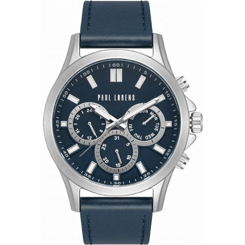 Pánské hodinky Paul Lorens PL8071A2-6F1 jsou elegantní a funkční hodinky, které se skvěle hodí pro každodenní nošení i formálnější příležitosti. Kombinují moderní design s vysokou kvalitou zpracování, čímž svému nositeli poskytují spolehlivost a stylový vzhled. Model s chronografy: 24h čas, dny v týdnu a měsíc, elegantním tmavě modrým koženým řemínkem a tmavě modrým ciferníkem vyzařuje mužný styl a vytváří jedinečnou kompozici, díky které vyniknete v každé společnosti. Nejsou to jen hodinky, je to manifest vašeho vytříbeného vkusu, který přitahuje pohledy a budí respekt v každé situaci.
