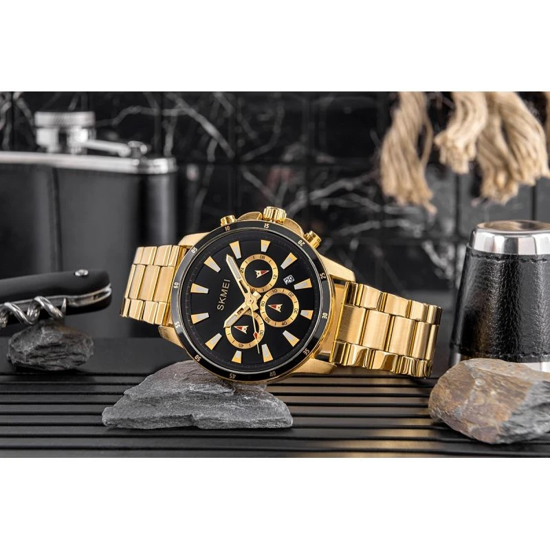 Pánské hodinky Skmei 2295 sází na luxusní design a svěží eleganci, která podtrhne váš styl v každé situaci. Ciferník hodinek obsahuje tři subciferníky, které mu dodávají sportovní nádech a plní praktické funkce, jako jsou stopky. Mezi 4. a 5. hodinou je decentně umístěna datumovka, která nenarušuje harmonii designu, ale je zároveň funkčním doplňkem. Celek doplňuje dokonale zpracovaný náramek, který kombinuje odolnost s luxusním vzhledem, což z těchto hodinek dělá stylový doplněk pro muže, který ví, jak udělat dojem.