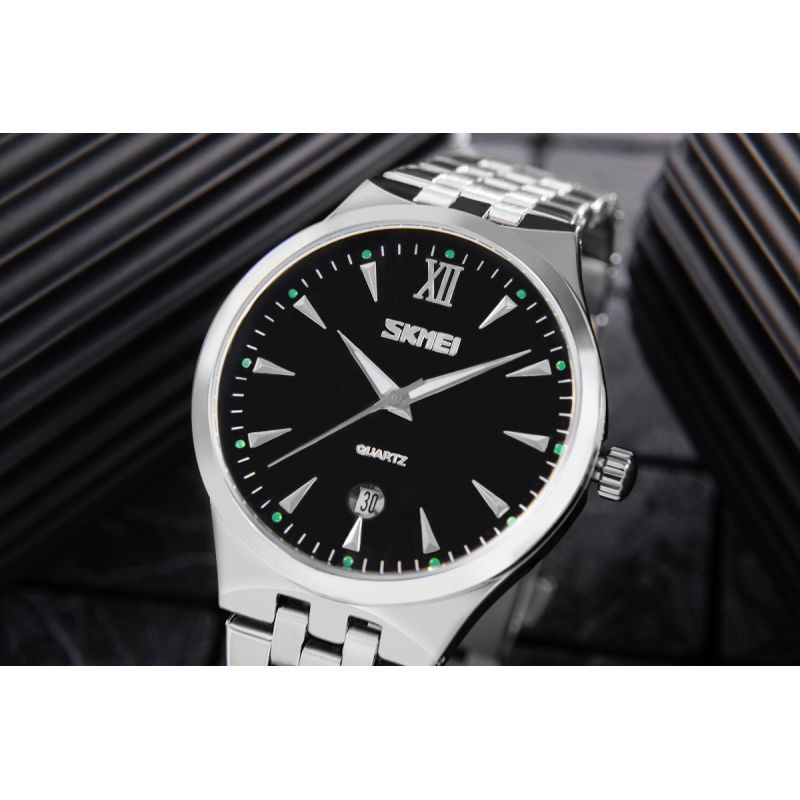 Náramky hodinek Skmei jsou vyrobeny z nejkvalitnější nerezové oceli a kombinují surovou pevnost s elegancí, která přitahuje pozornost. Jejich pevná konstrukce je nejen symbolem spolehlivosti, ale také jistotou, že hodinky zůstanou pevně na vašem zápěstí, ať už vás čekají jakékoli nástrahy dne. Přesné a bezpečné zapínání.