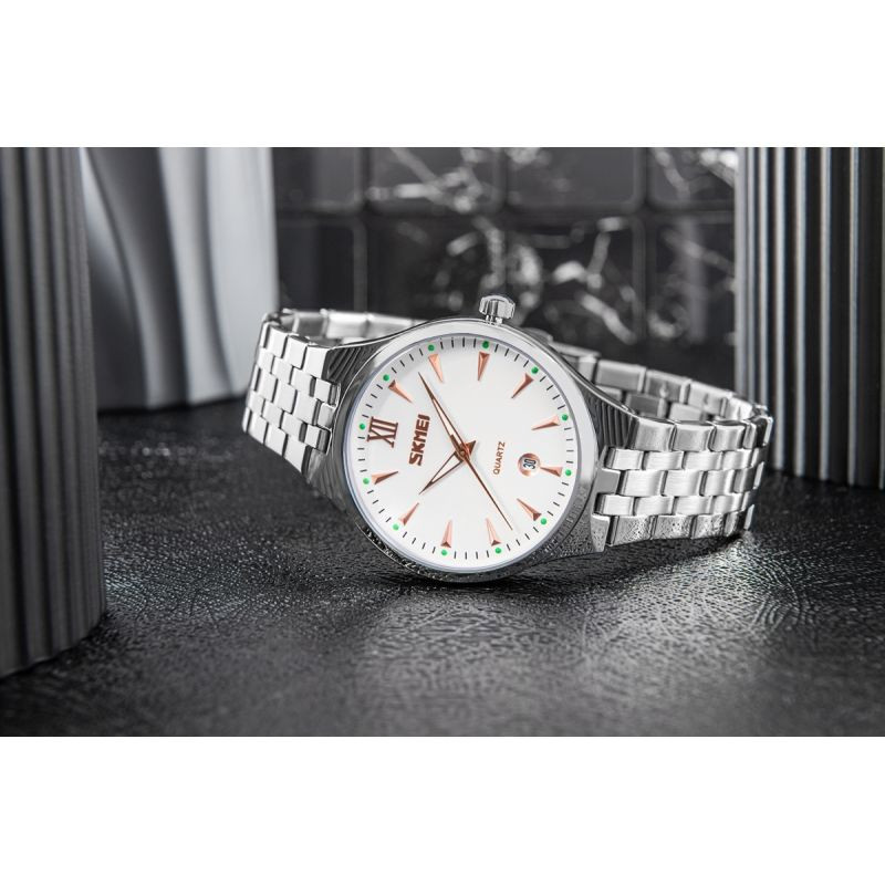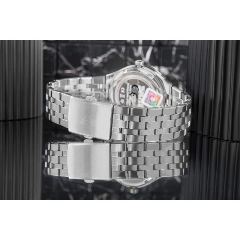 Náramky hodinek Skmei jsou vyrobeny z nejkvalitnější nerezové oceli a kombinují surovou pevnost s elegancí, která přitahuje pozornost. Jejich pevná konstrukce je nejen symbolem spolehlivosti, ale také jistotou, že hodinky zůstanou pevně na vašem zápěstí, ať už vás čekají jakékoli výzvy dne. Přesné a bezpečné zapínání.