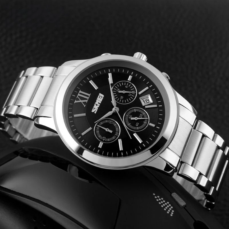 Náramky hodinek Skmei, vyrobené z nejkvalitnější nerezové oceli, v sobě spojují surovou pevnost s poutavou elegancí. Jejich robustní konstrukce je nejen symbolem spolehlivosti, ale také jistotou, že hodinky zůstanou pevně na zápěstí bez ohledu na výzvy dne. Přesné a bezpečné zapínání.