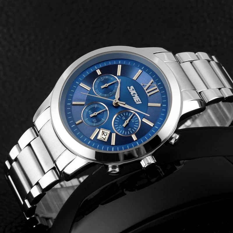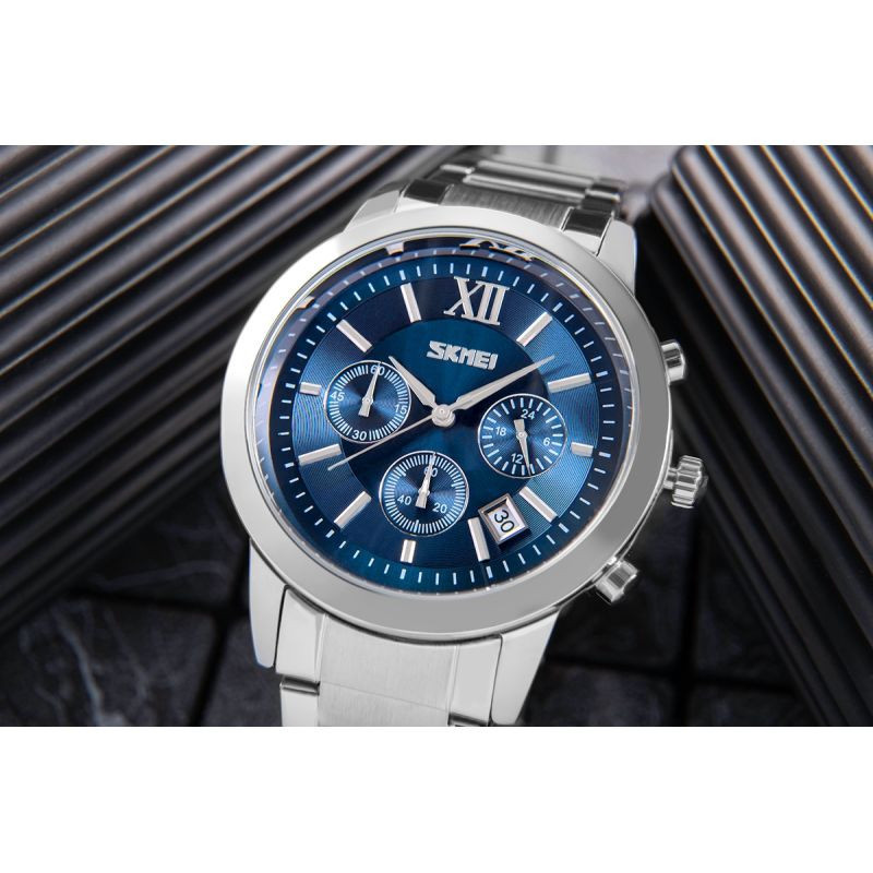 Náramky hodinek Skmei, vyrobené z nejkvalitnější nerezové oceli, v sobě spojují surovou pevnost s poutavou elegancí. Jejich robustní konstrukce je nejen symbolem spolehlivosti, ale také jistotou, že hodinky zůstanou pevně na zápěstí bez ohledu na výzvy dne. Přesné a bezpečné zapínání.
